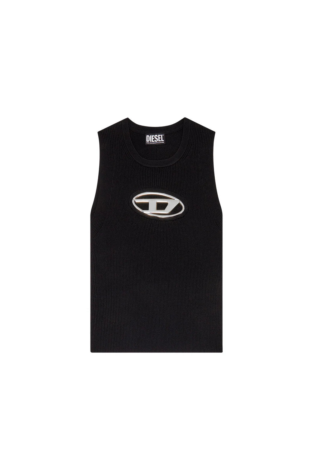 Diesel M-Onerva-Top Cut-out knit top with logo plaque Deep Black