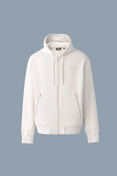 The adjustable drawcord hood features a unique velvet embroidered wordmark, while the left sleeve is highlighted with Mackage’s signature velvet "M." A spacious kangaroo pocket and rib knit trims add timeless detail to this elevated loungewear essential with a refined streetwear aesthetic.