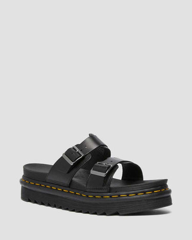 Unisex Myles Brando Leather Buckle Slide Sandals Black