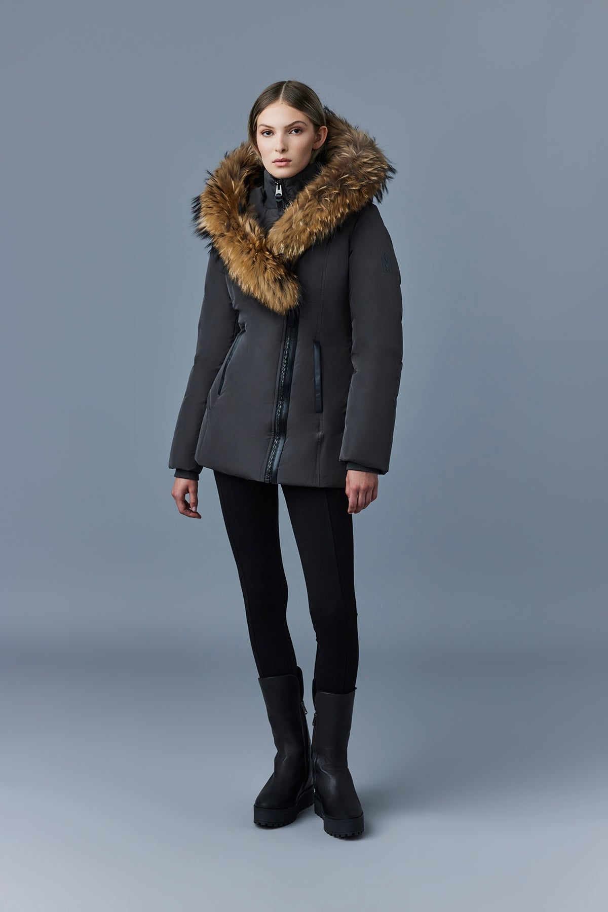 ADALI down coat with natural fur Signature Mackage Collar Carbon