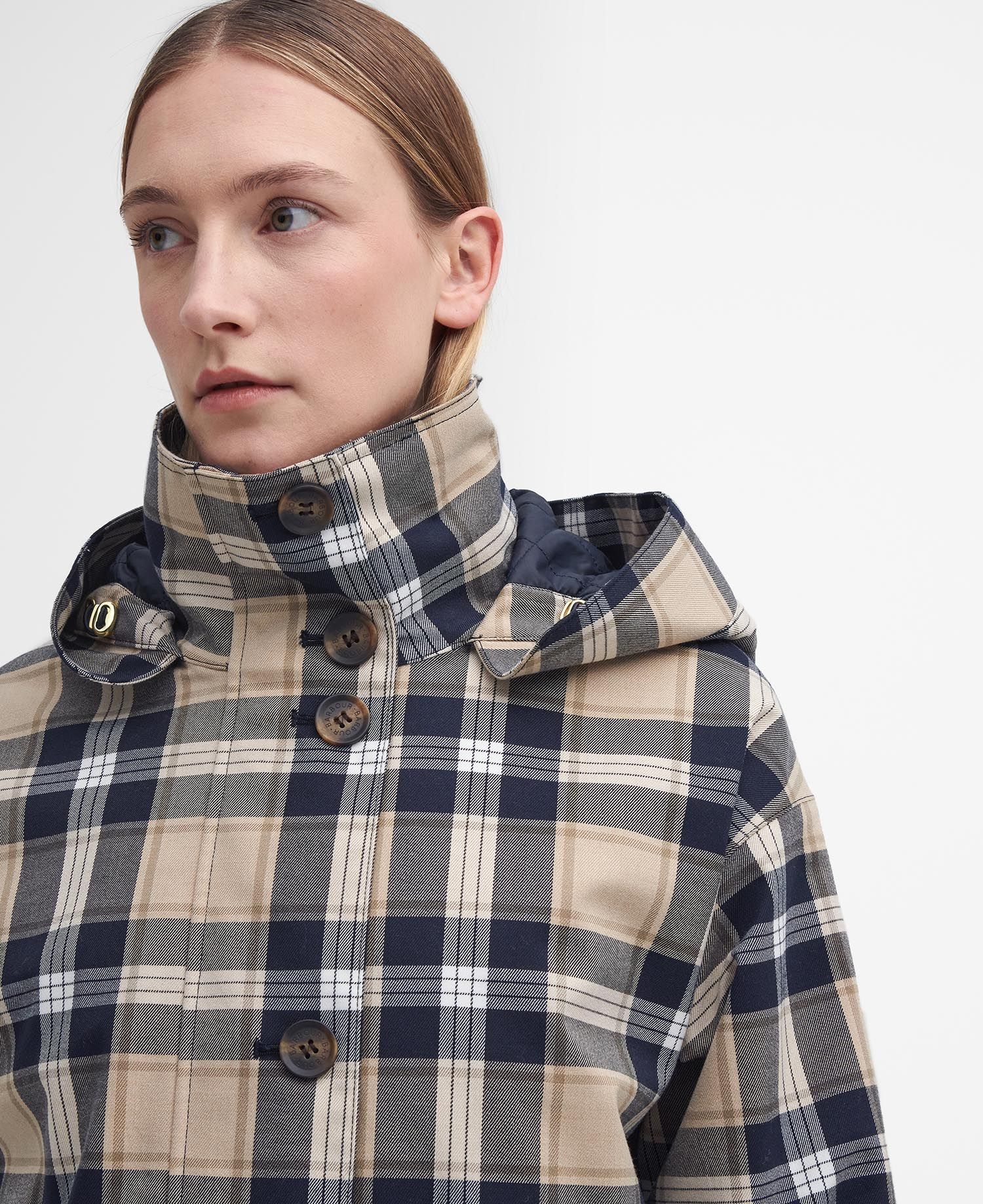 Iris Tartan Waterproof Jacket White Pepper Navy Check