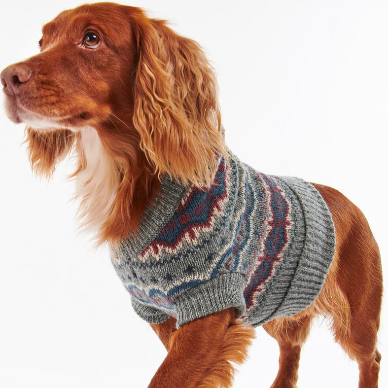 The Barbour Case Fair isle Dog Jumper boasts a unique design with a roll neck for elite comfort and warmth. Keep your canine companion cosy with this jumper, perfectly matching the men's Fair isle Pom Beanie so that you can dog walk in style.