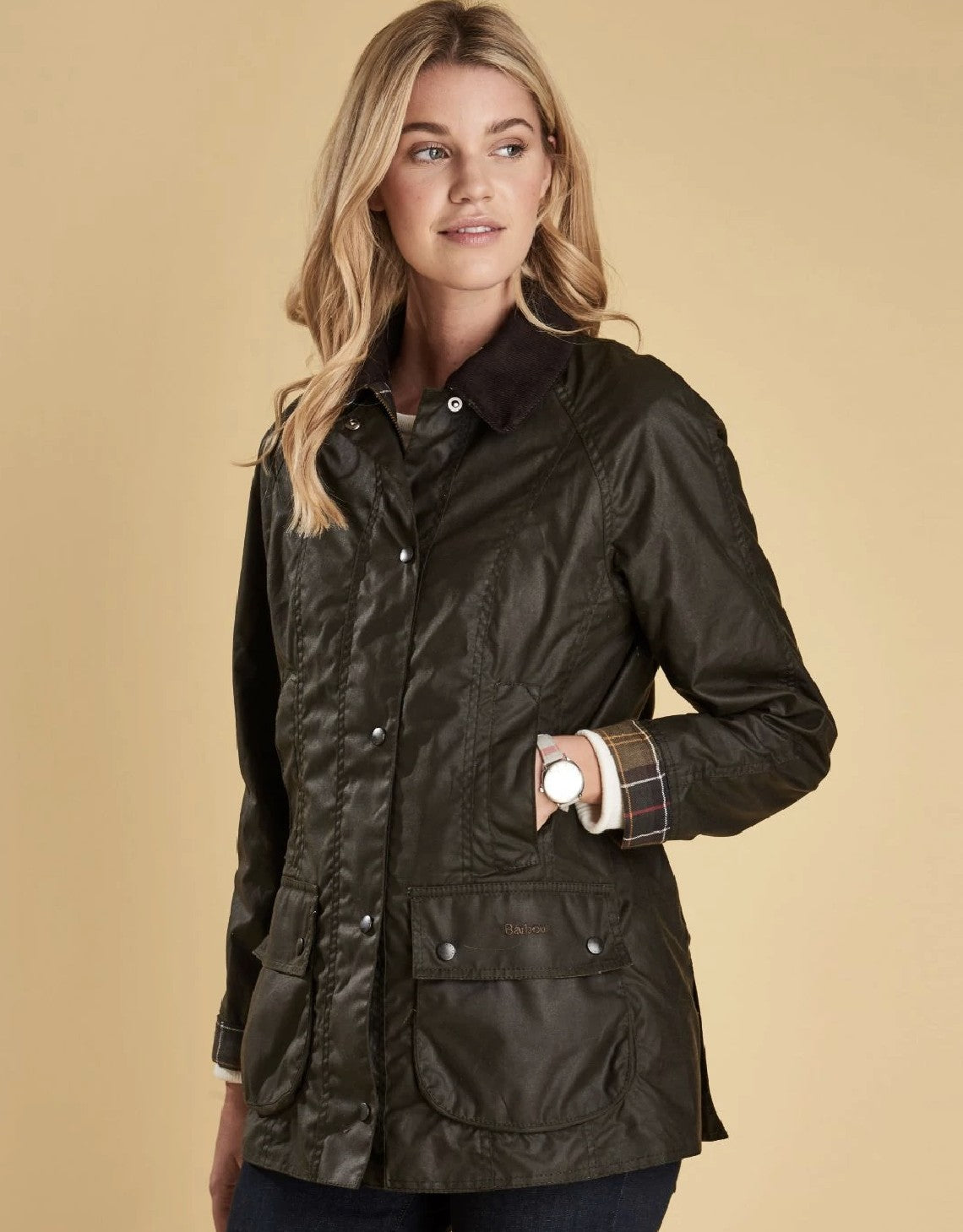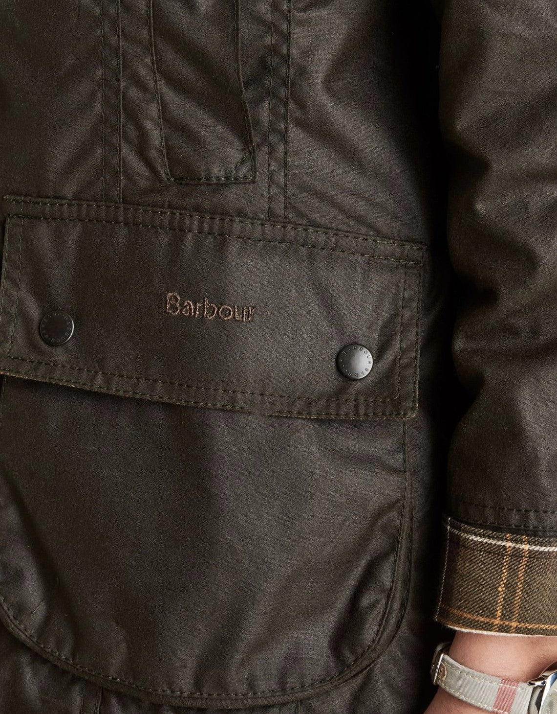 A true icon of the British countryside, the Barbour Classic Beadnell Wax Jacket is made with a Sylkoil waxed cotton outer and the signature cotton tartan lining.
