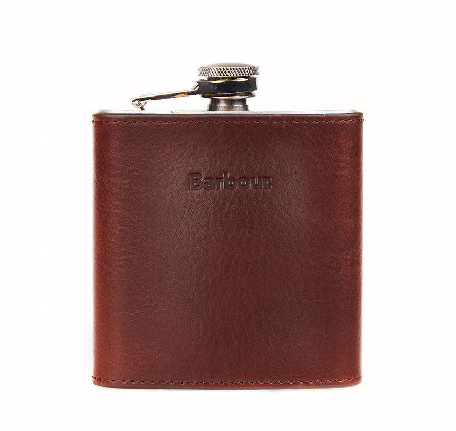 A great gift idea for someone special, this 5oz stainless steel hip flask is wrapped in real leather and presented in a black presentation box. The outer of the flask is embossed with authentic Barbour branding.