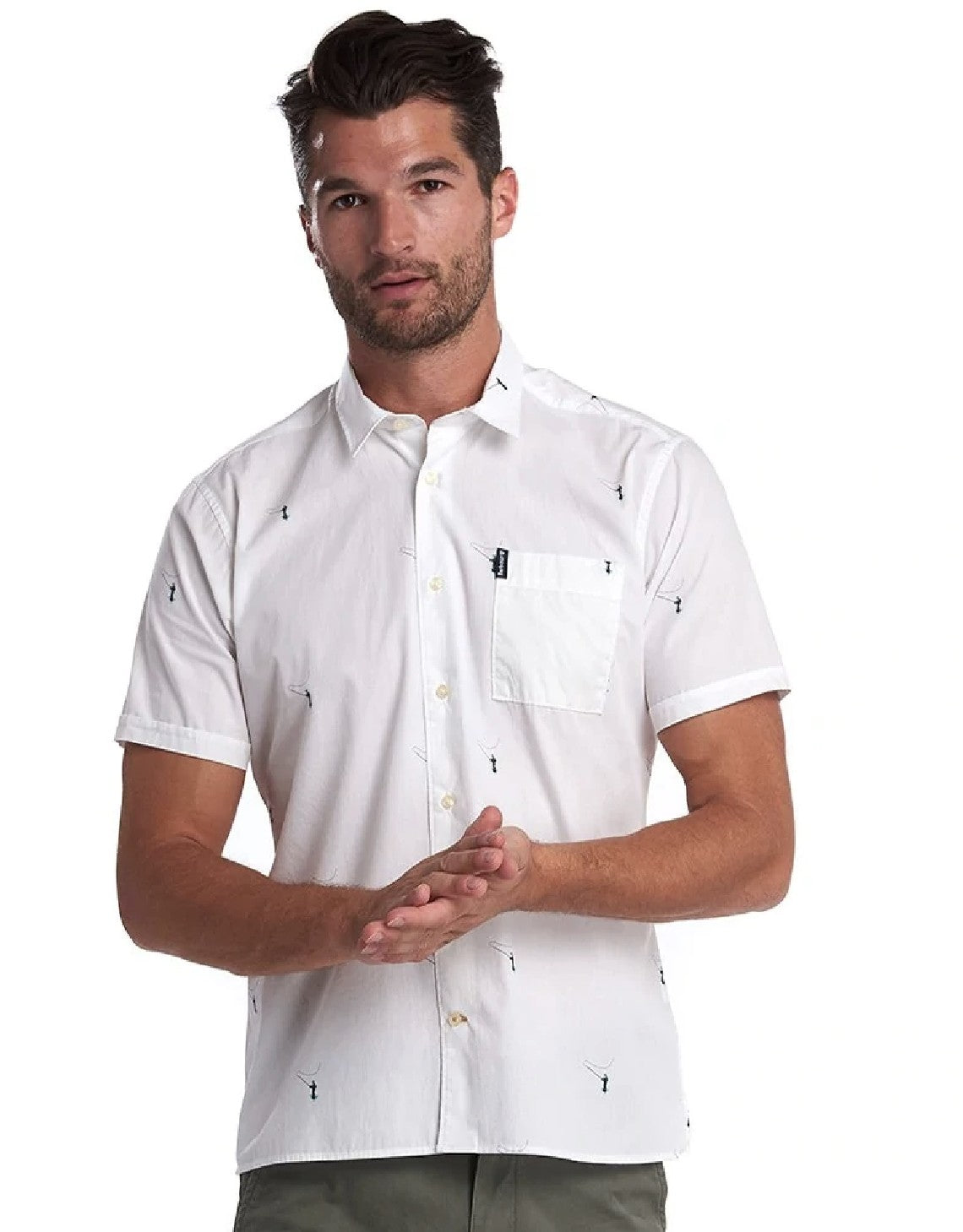 Boasting a playful all-over fisherman print for a summer-ready look, this is the perfect shirt for the warmer days. Featuring a point collar and a squared-off chest pocket, the shirt is finished with a woven tab to the pocket edge.