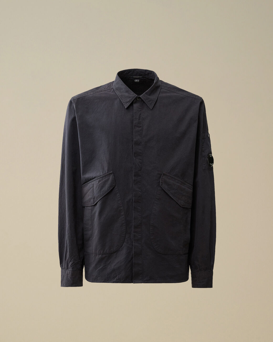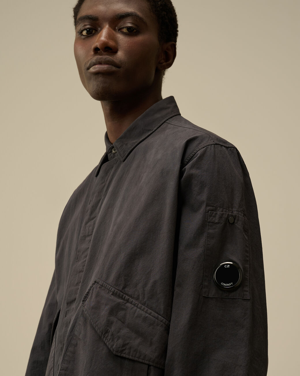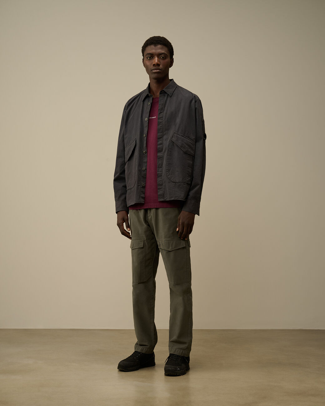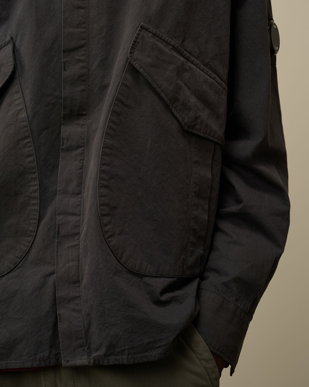 Overshirt crafted in cotton reps made with double buffing. Garment dyed.