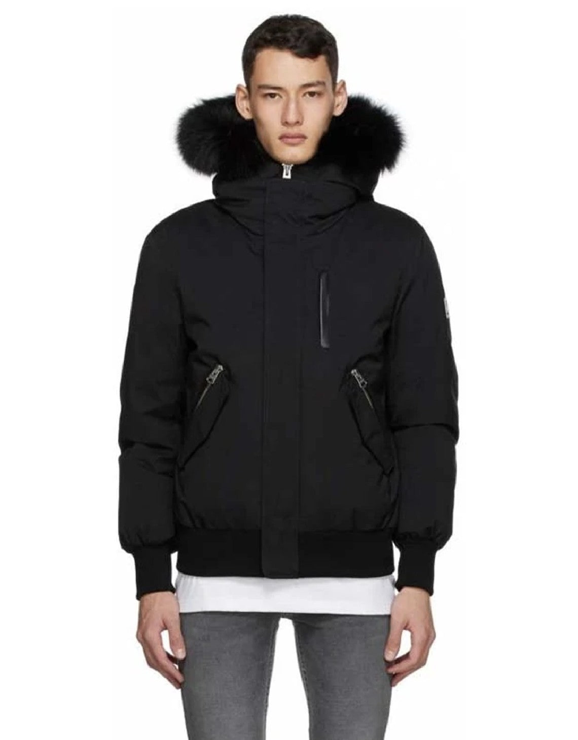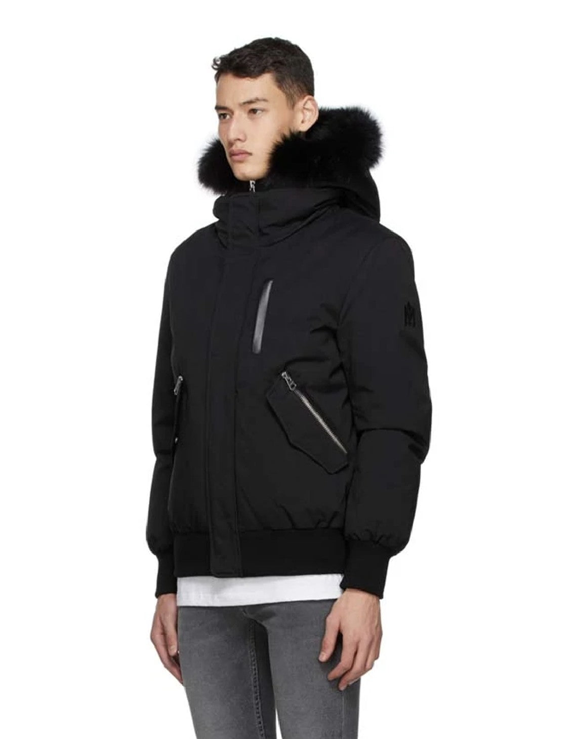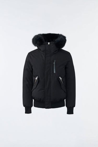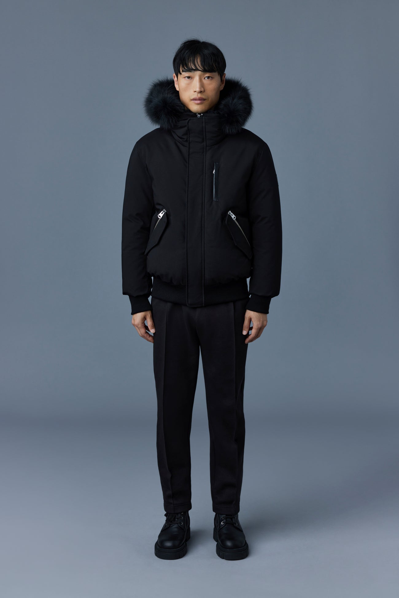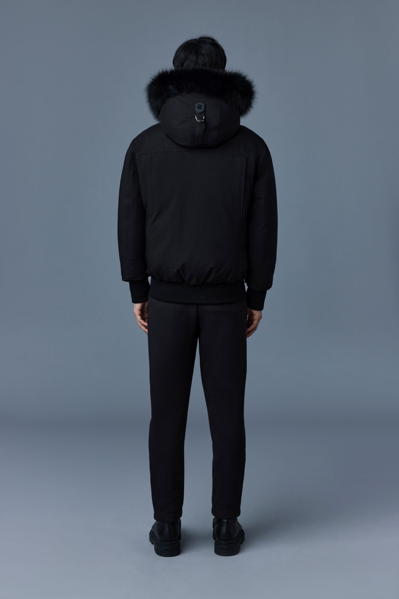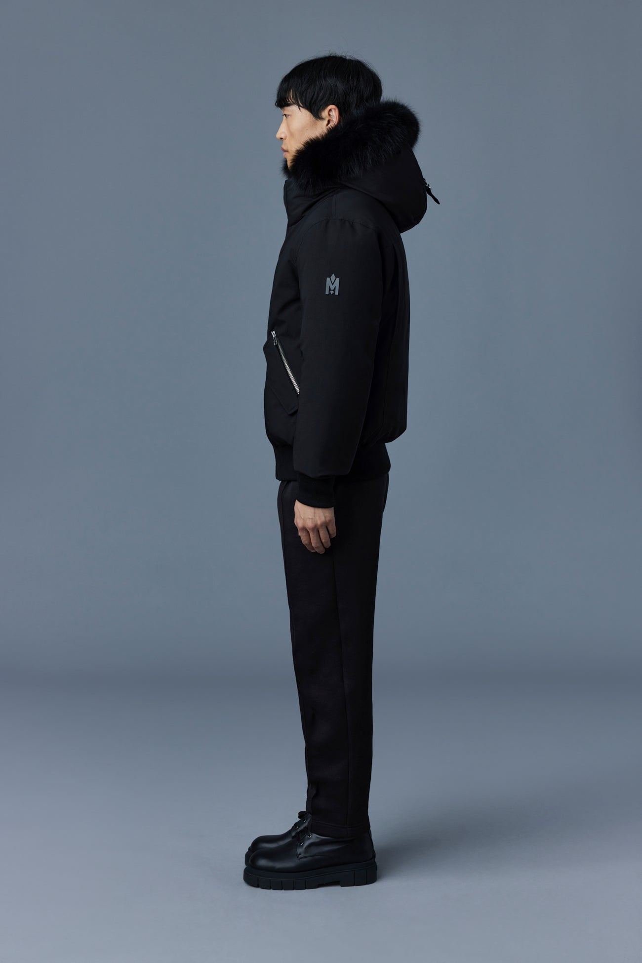 DIXON is a Nordic Tech sustainable down bomber with a removable hooded bib and detachable blue fox fur trim. Designed for maximum comfort in deep winter, it is windproof, water resistant, repellent, and breathable. Insulated pockets, a 2-layer weave, and rib hems add warmth while hidden zip back vents bring multi-function. A street-style cut with tactical performance made for any outdoor adventure.