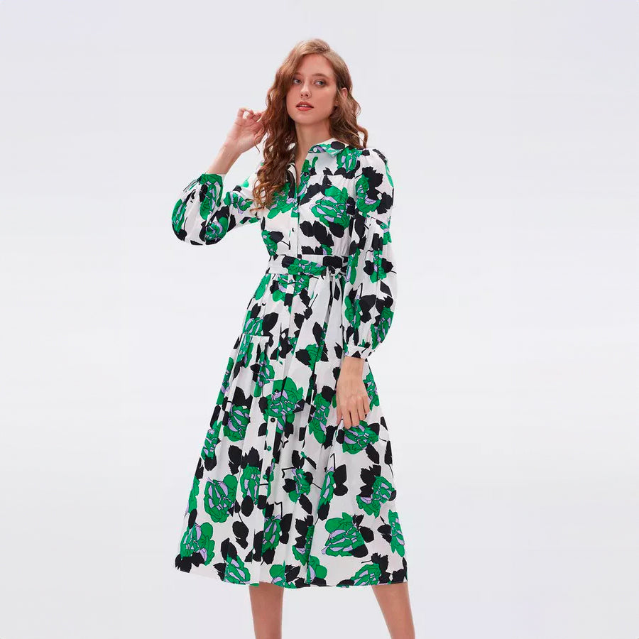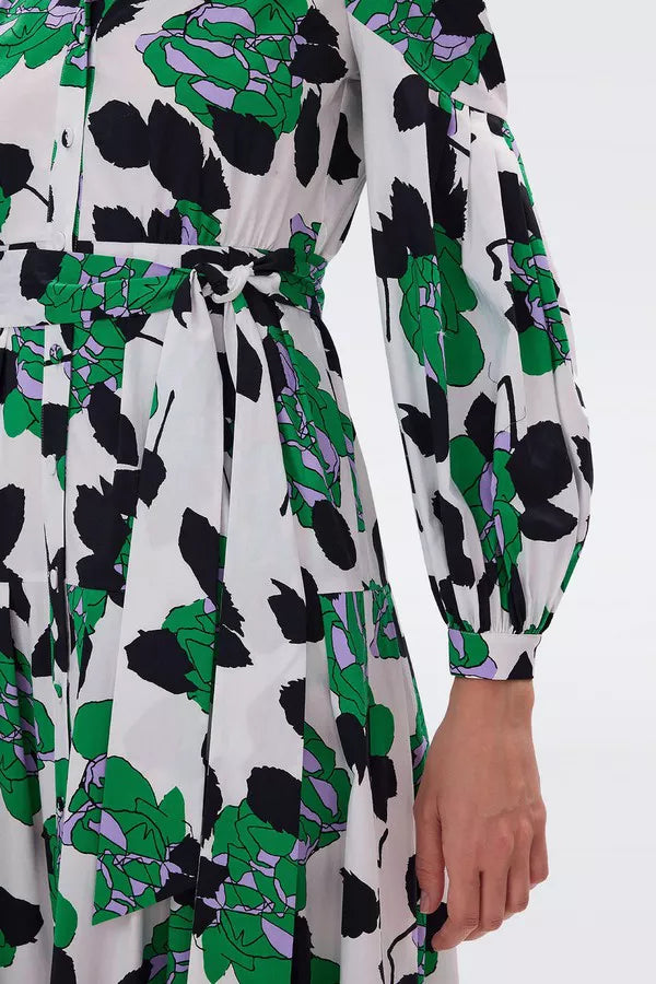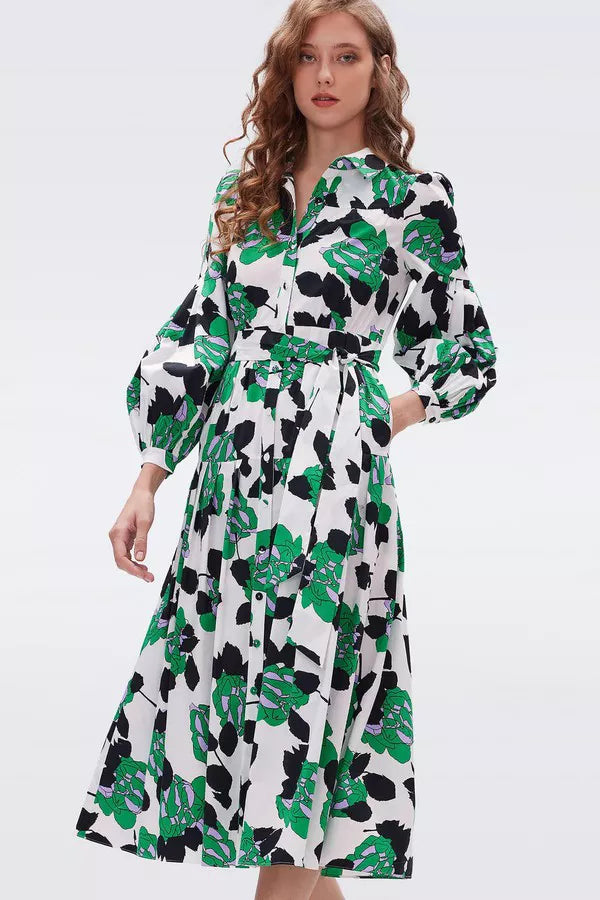 Easy and structured, the Lux dress is cut from a comfortable cotton poplin. This shirt dress has puffed bracelet-length sleeves, a classic collar, and buttons that run from its neckline to its midi-length skirt. Wear it loose for an easy fit, or cinch it at the waist with the matching belt.