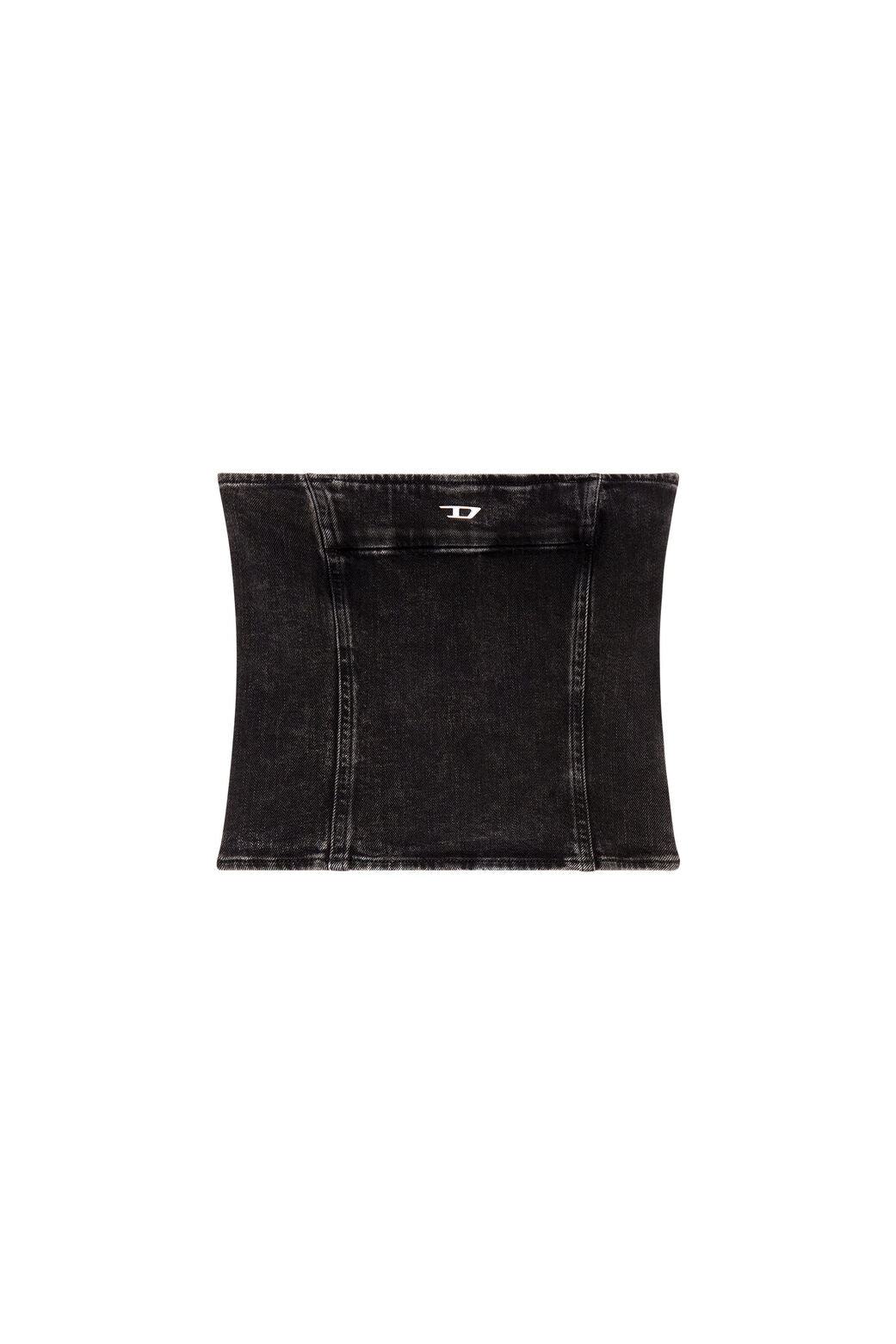 This denim top is designed with a structured, strapless silhouette that's decorated on the front with a metal D logo. It's crafted from denim with a hint of stretch in an essential black wash.
