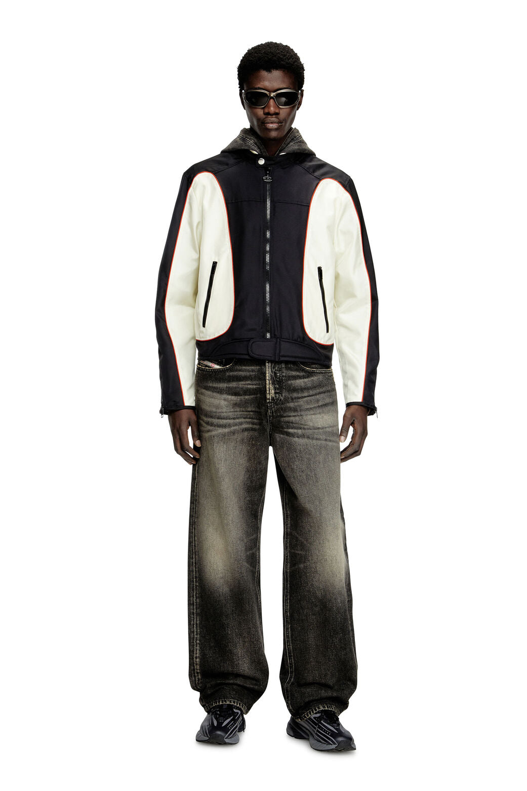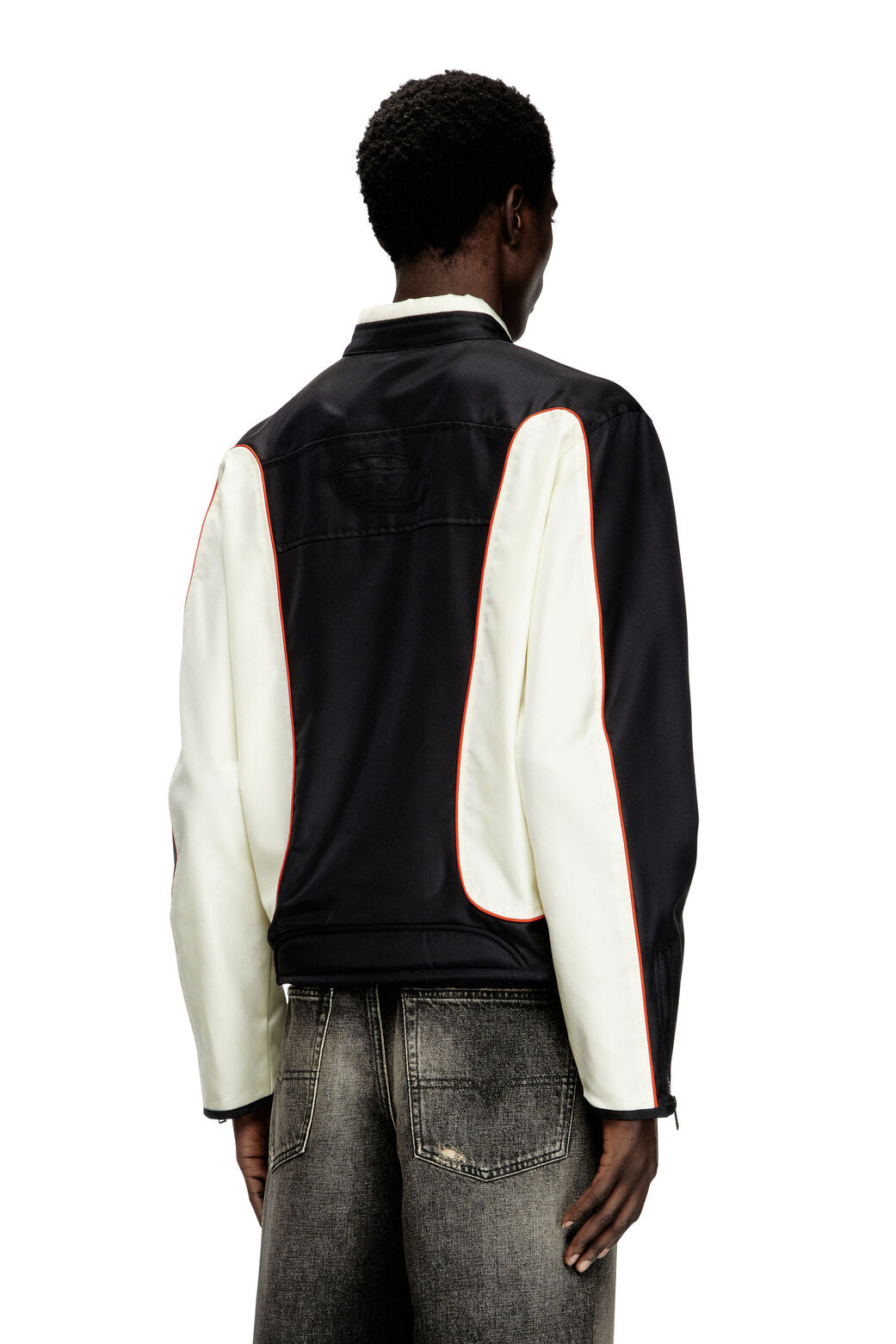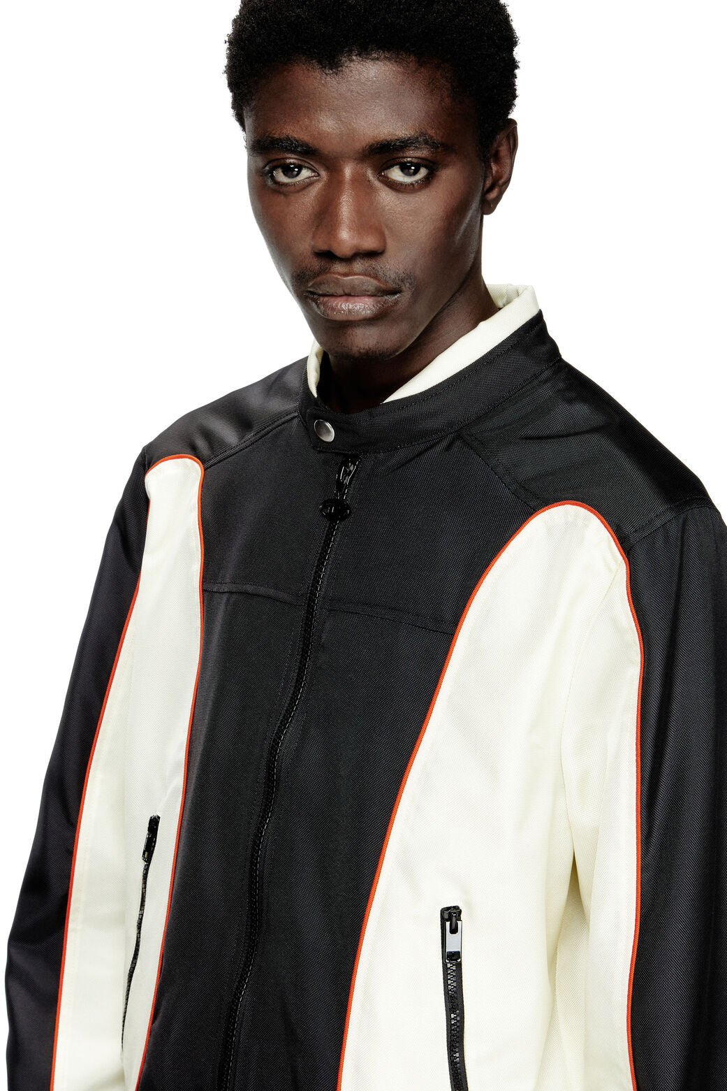 J-Blink-A Colour-block biker jacket with piping White/Black