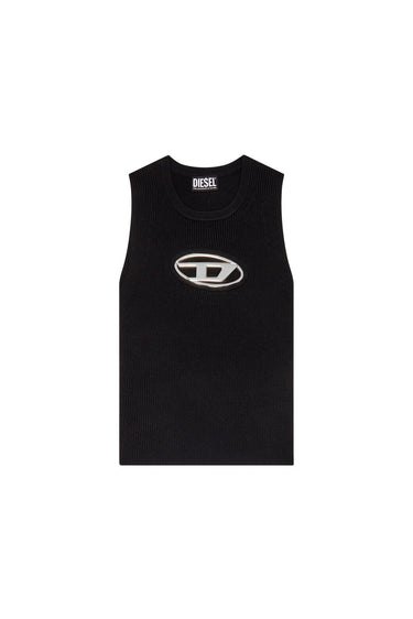 Diesel M-Onerva-Top Cut-out knit top with logo plaque Deep Black