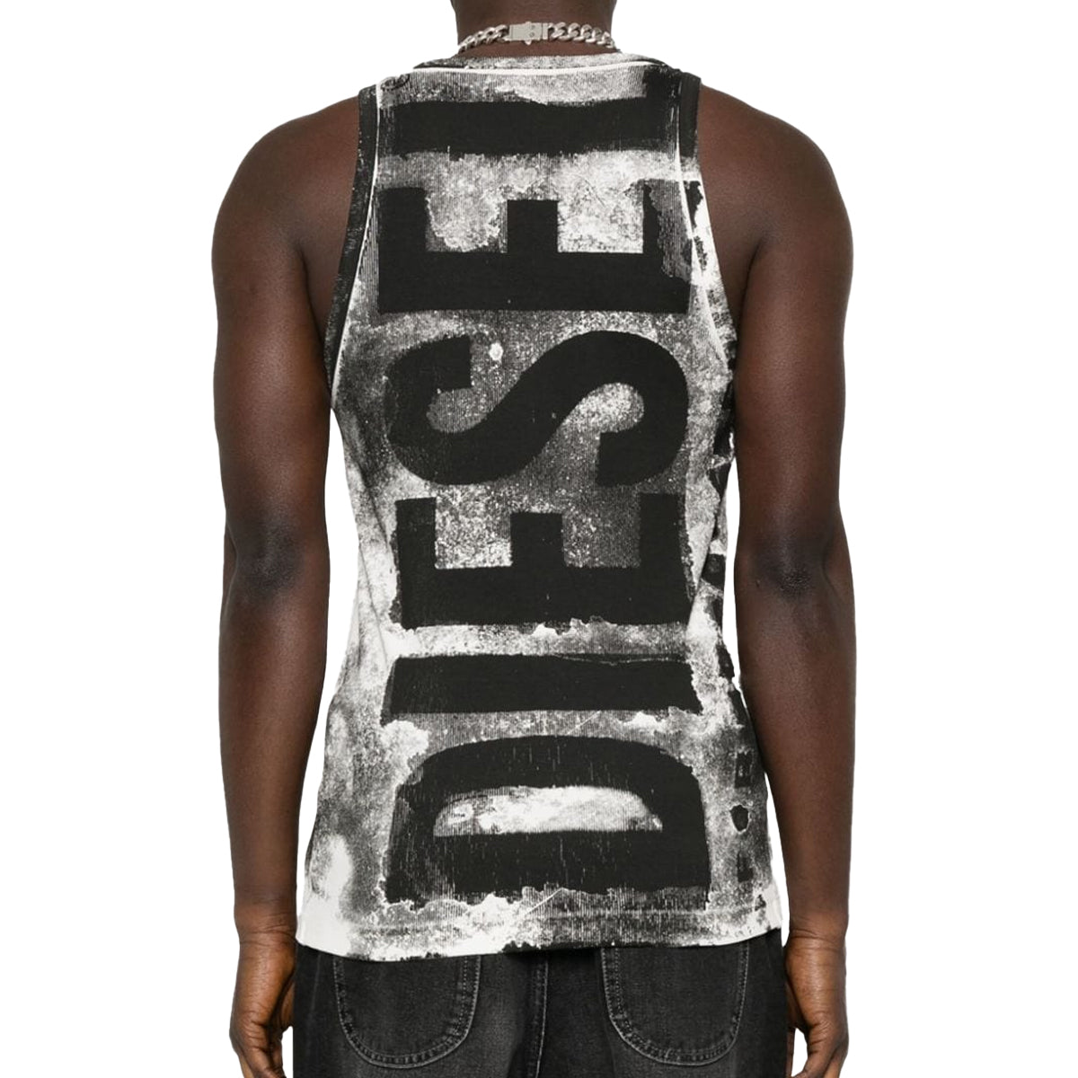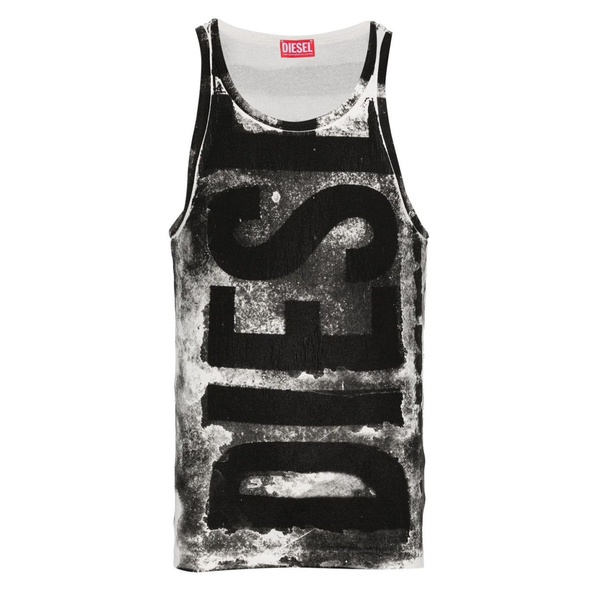 DIESEL T-Lift-BiscTank Top. Tank top with a bleeding-effect maxi Diesel logo and garment-dyed for a faded look. Made from raw-feel cotton jersey with a ribbed finish.