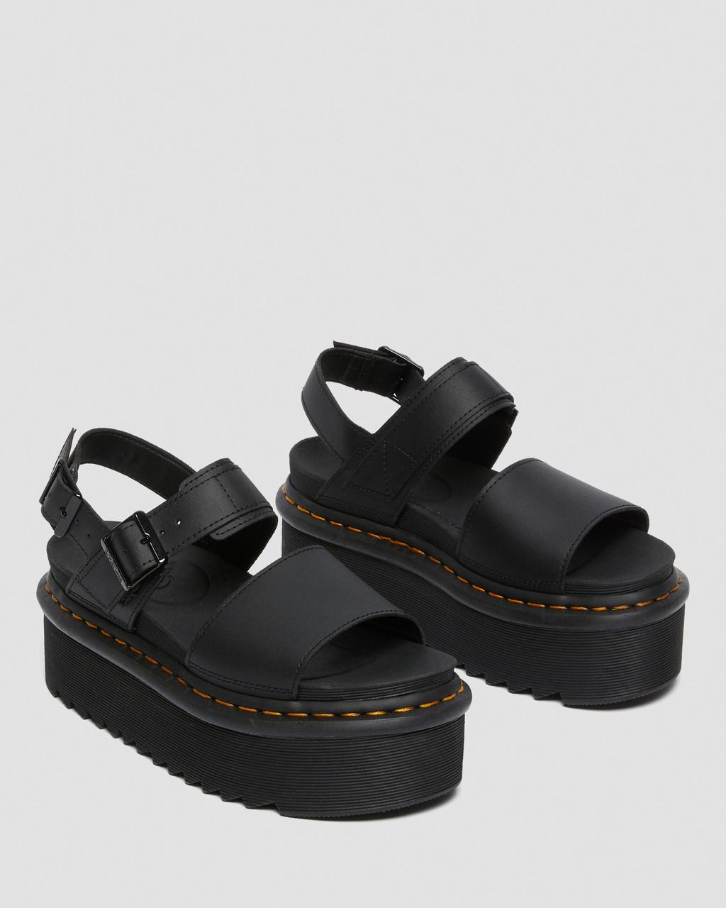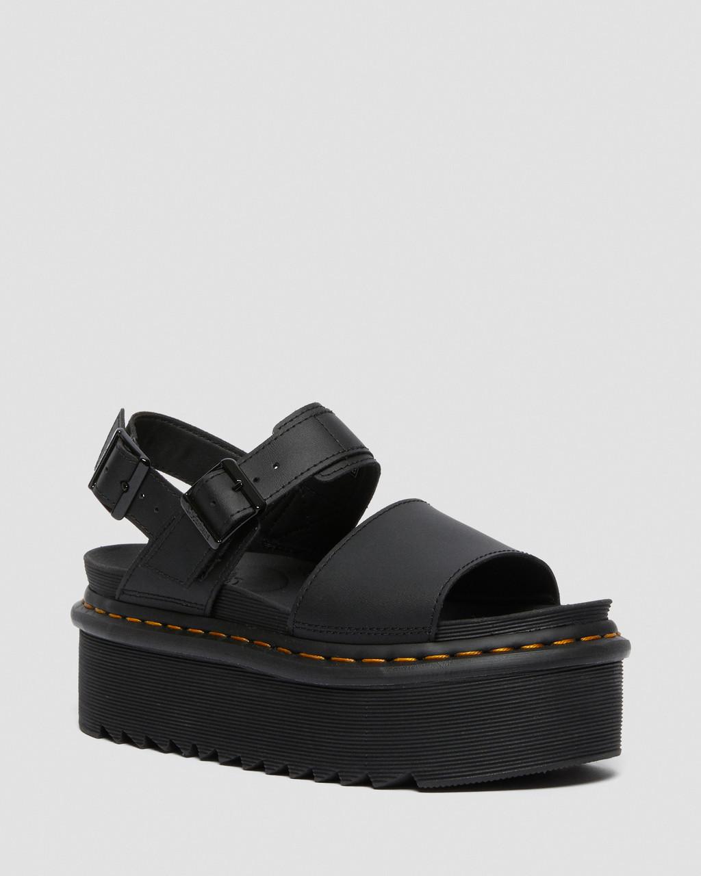 Women's Voss Women's Leather Strap Platform Sandals Black