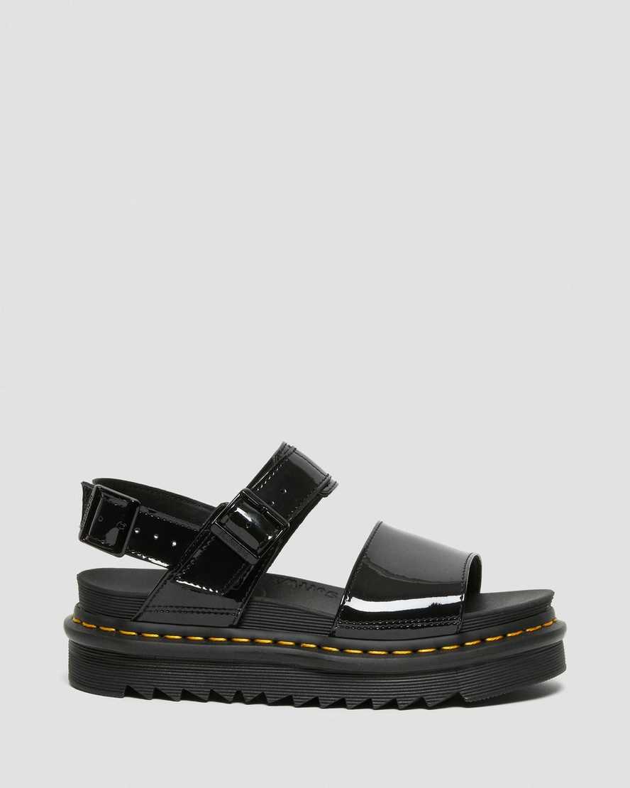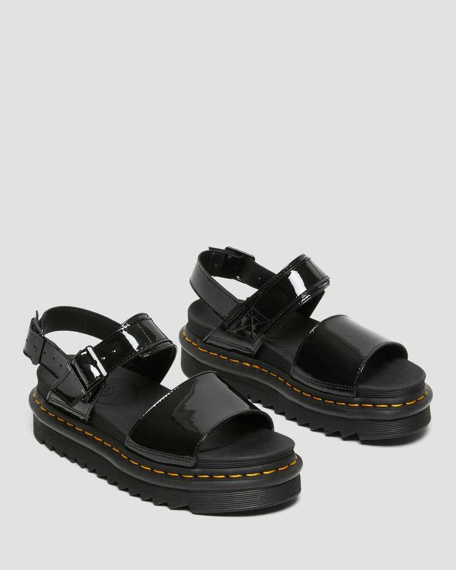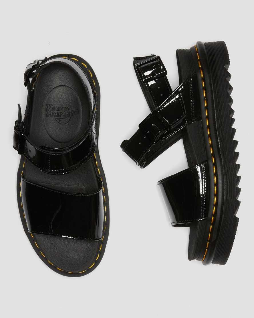 Voss Women's Patent Leather Strap Sandals Black