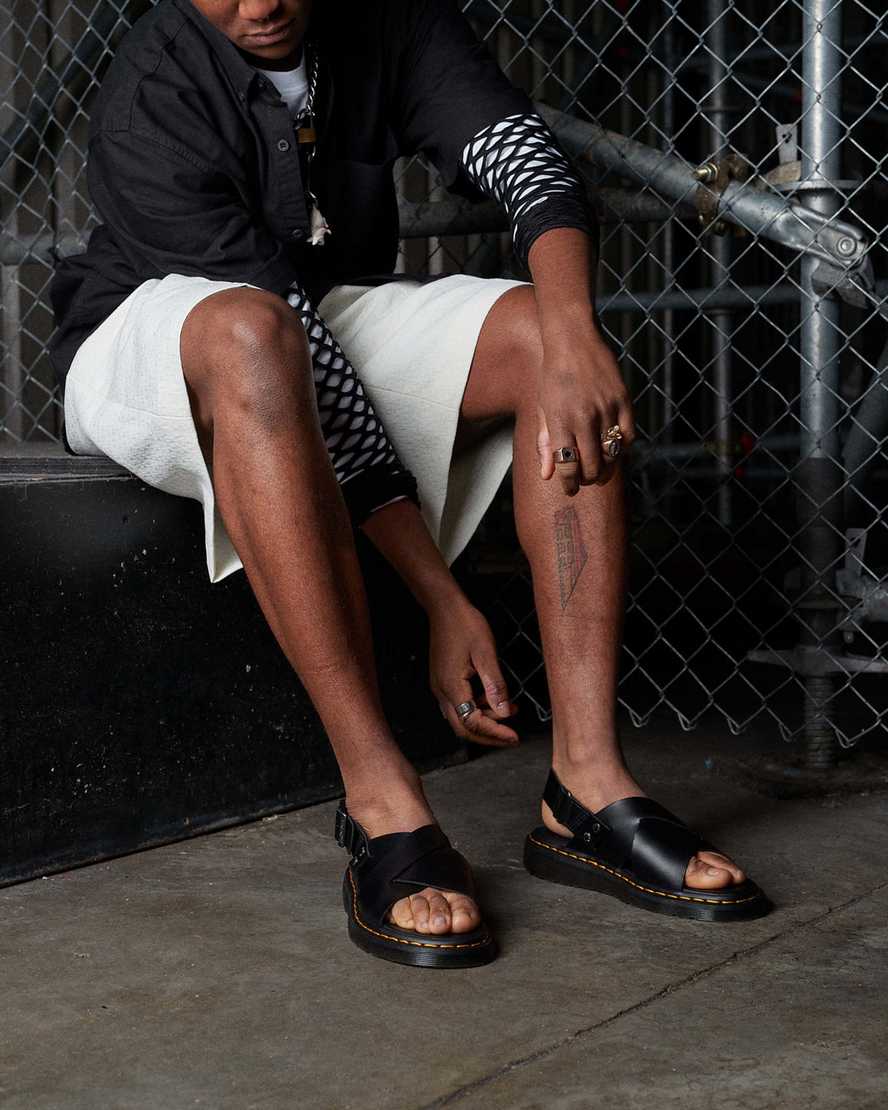 Unisex Zane Brando Leather Slingback Sandals Black Brando