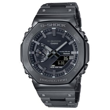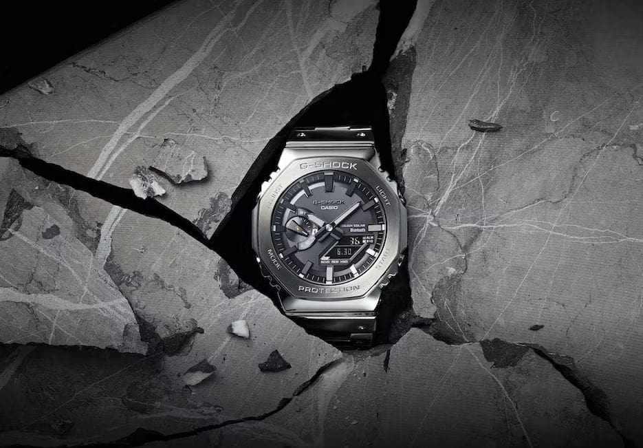 Luxe full-metal construction with a screw-back case, bezel, and band crafted in stainless steel creates a streamlined, minimalist design, while protecting the module from impact when dropped. We take it way back with the octagonal bezel and dimpled band design of the original from 1983, all done in metal.