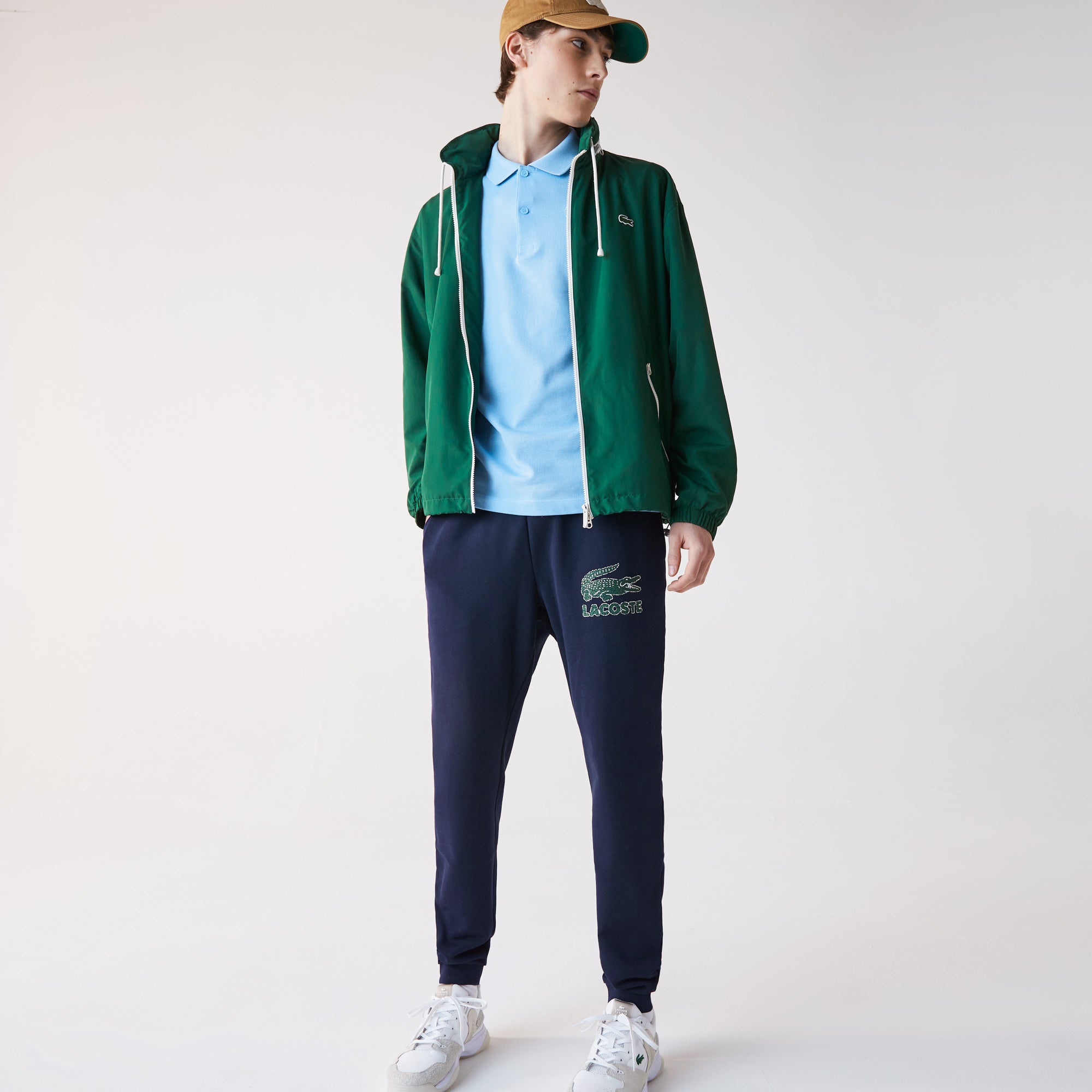 • Crackled effect Lacoste print logo on left thigh