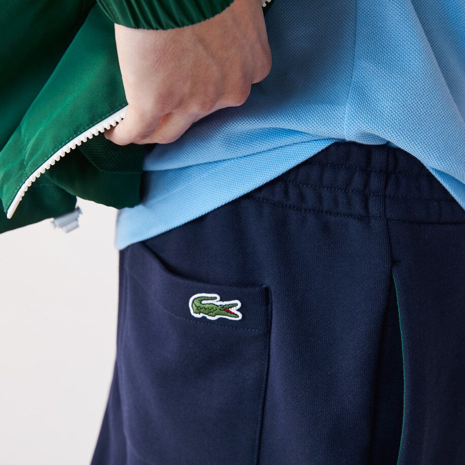 An exclusive crackled crocodile logo adorns the left thigh of these solid tracksuit pants. Crafted in cotton blend fleece, this comfortable, trendy piece asserts exquisite finishes. Designed for the man on the move, this piece teams up with a zip sweatshirt and immaculate trainers.