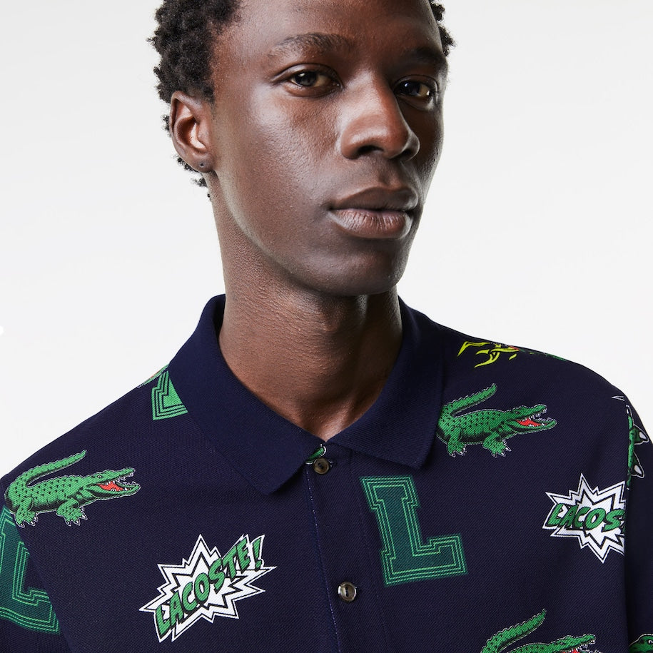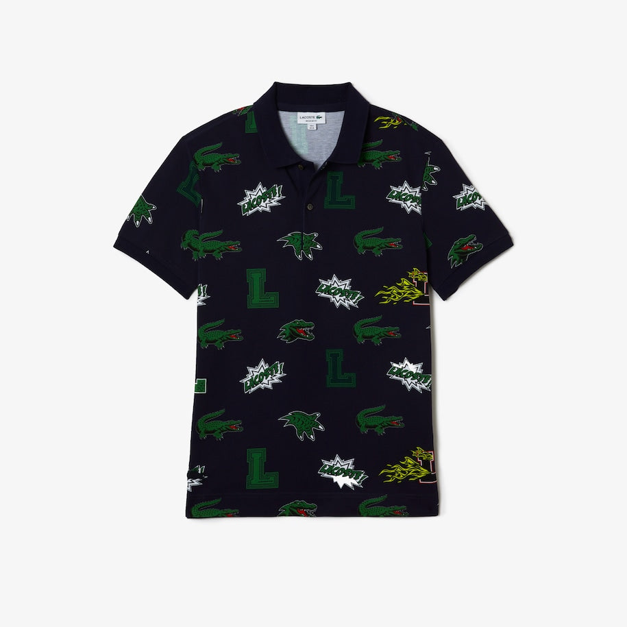 Men's Regular Fit Crocodile Print Polo MARINE/MULTICO