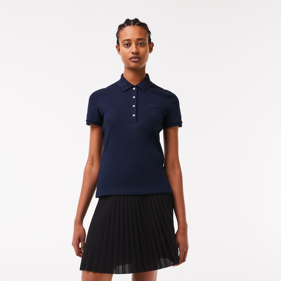 WOMEN'S STRETCH COTTON PIQUE POLO NAVY BLUE