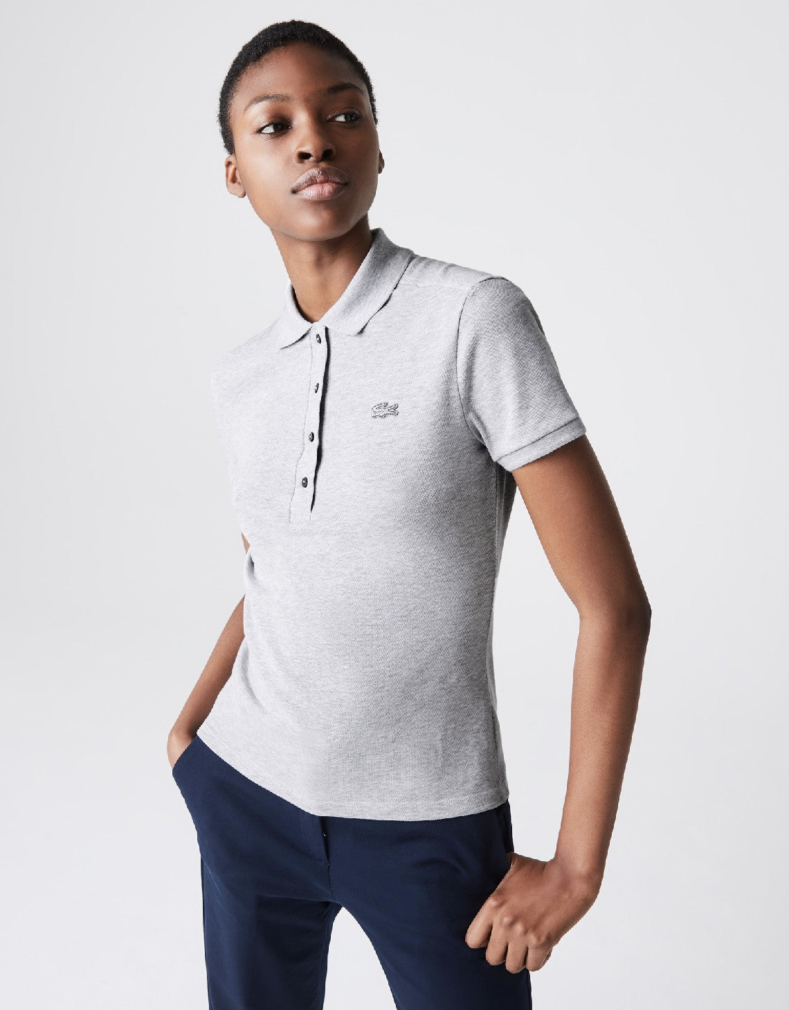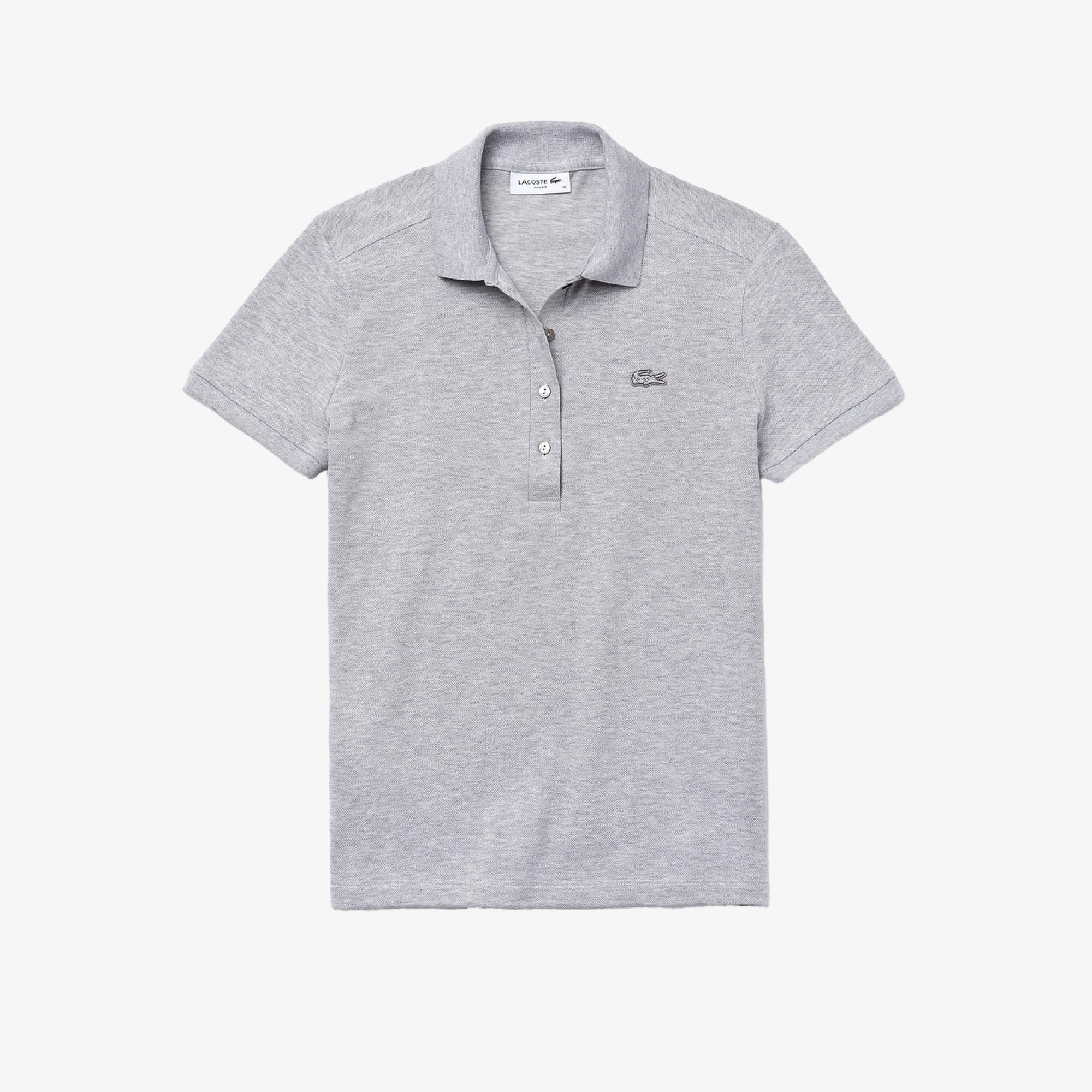 Women's Slim Fit Stretch Cotton Piqué Polo Silver Chine