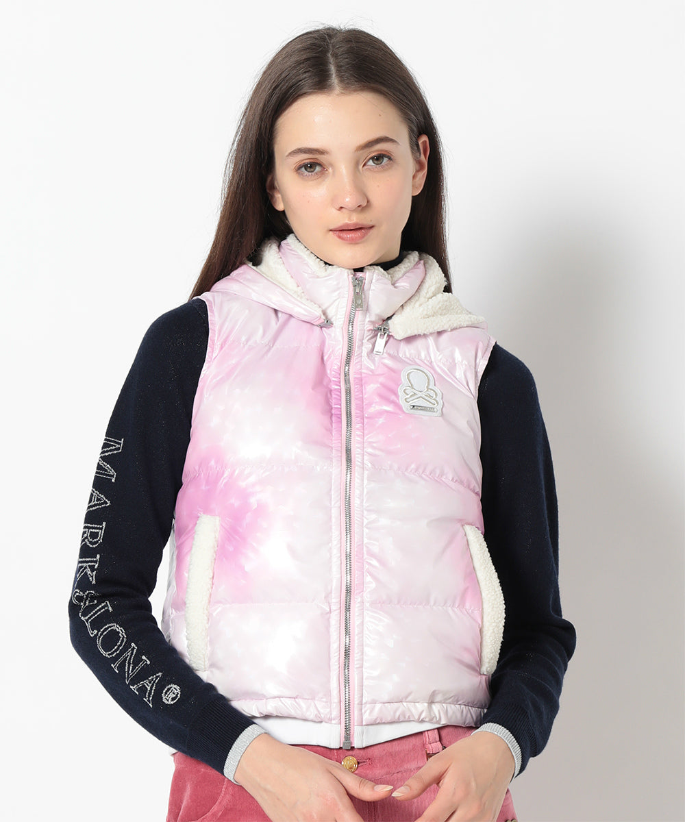 The boa is made of eco-friendly eco-friendly boa made from recycled materials. It has a wool-like texture and provides a comfortable feel and warmth. The padding is made of LOFTECH Eco, a high-performance recycled synthetic fiber padding that combines lightweight, durability, and water repellency at a high level. It boasts the highest level of warmth retention among synthetic fiber insulations, and is as lightweight and warm as 700-fill-power down.