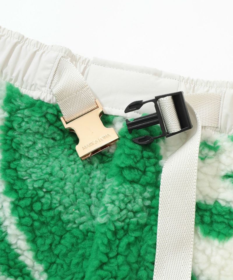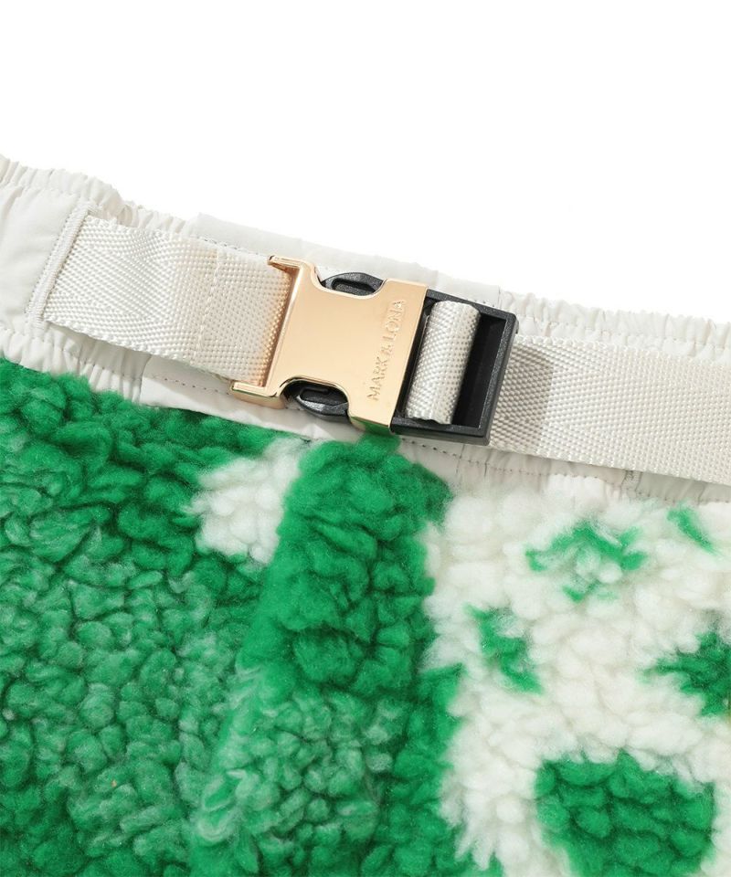 ●MAIN:100% Polyester Pile (BLACK): 91% Polyester, 9% Acrylic Pile (WHITE): 72% Polyester, 28% Acrylic Waist: 100% Polyester Quilting: 100% polyester Stuffing: 100% polyester Lining: 100% polyester Synthetic leather Parts: Synthetic leather