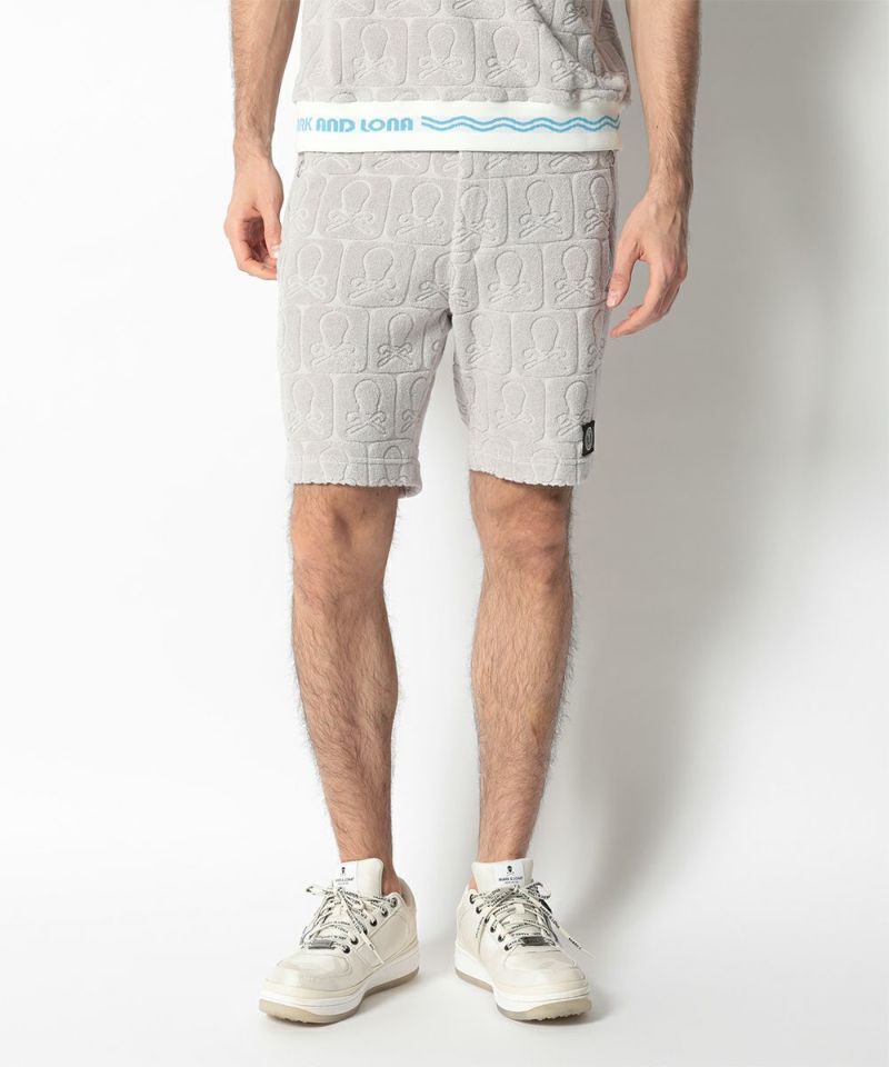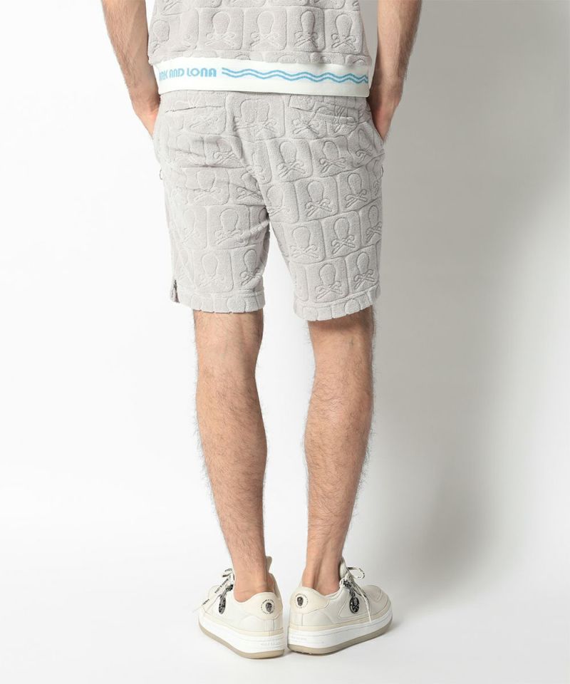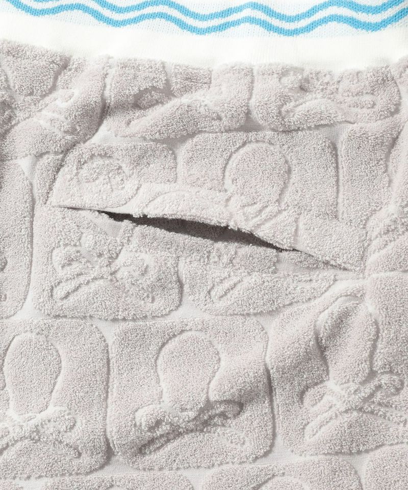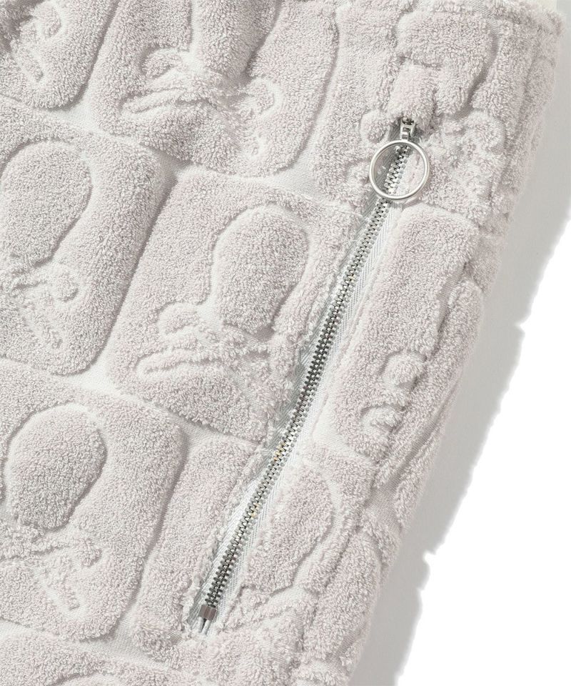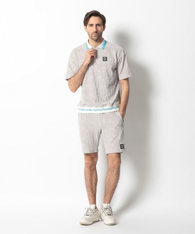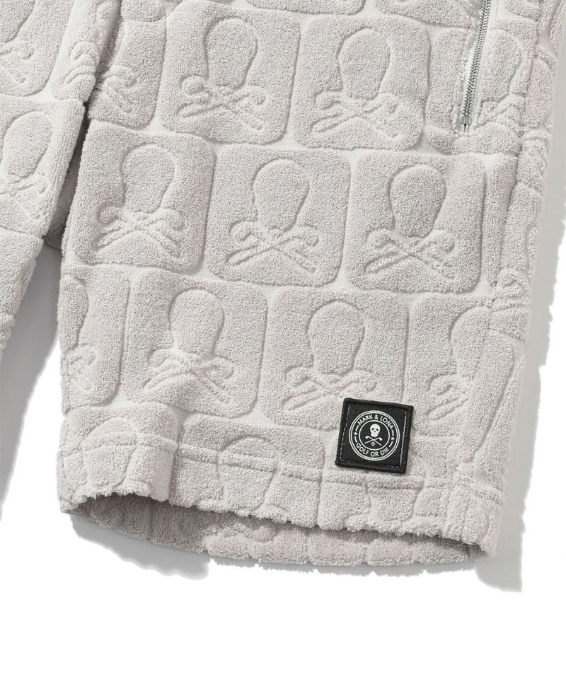 The pile side is made of soft, bulky, moisture-absorbent cotton, while the skin side is made of lightweight, kick-back polyester. The expressive 2-way stretch pile jacquard has excellent comfort and texture. Recommended to wear as a set-up with the half-zip polo (MLM-3A-AP05) using the same material and motif.