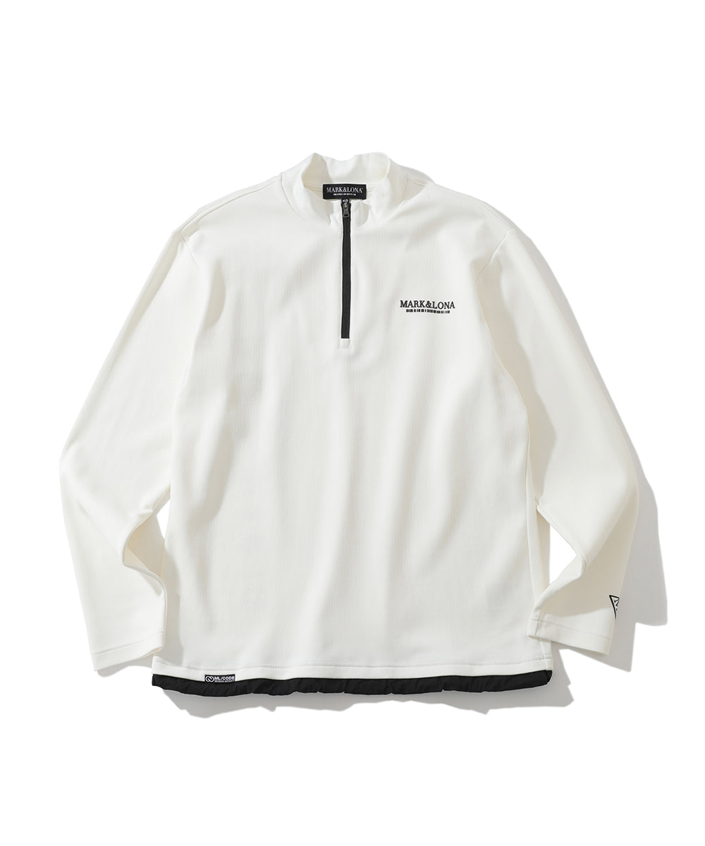 Long sleeve mock neck T-shirt from CODE is now available for the first time. The dynamic motifs and combination of different materials give this piece a sporty impression. The signature CODE motif is printed in 3D on the left chest, the triangle logo is printed on the left sleeve, and the season number is printed in 3D on the hem. The back features a dynamic print of the barcode motif and season number. The classic mock neckline is retained, while the shoulders and sleeves are sharply finished for a sophisticated look with just the right amount of room in the body. The soft-fitting collar and long front zipper accentuate the sporty impression.