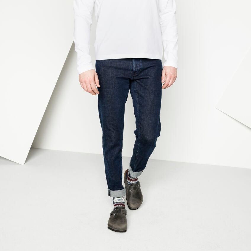 Natural leather can be recognized by its untreated surface. BIRKENSTOCK purposely does not treat surface grains and other characteristic features. BIRKENSTOCK uses sturdy leather with a thickness of 2.8 to 3.2 millimeters as upper material.