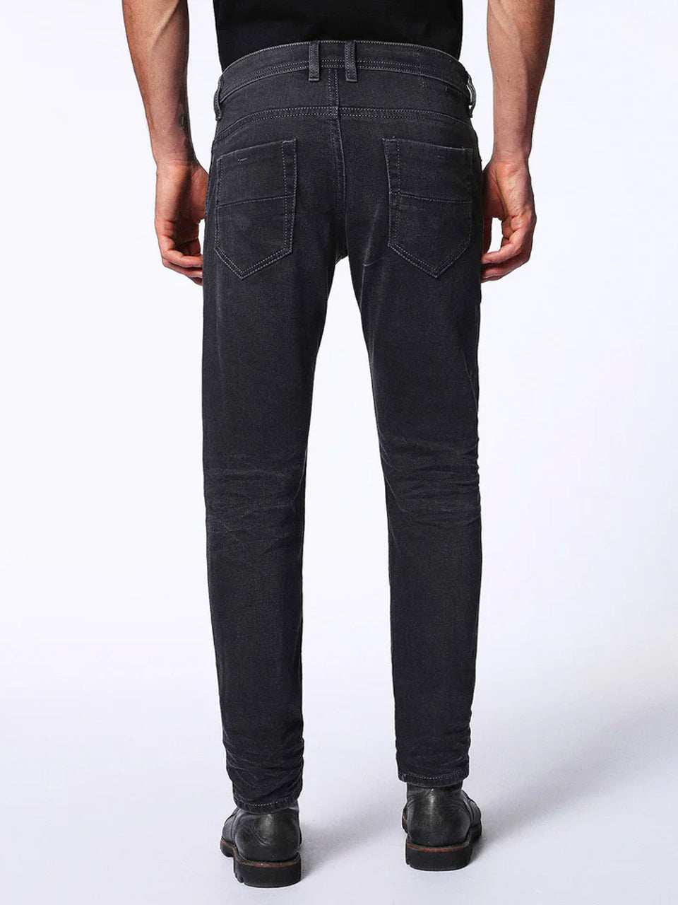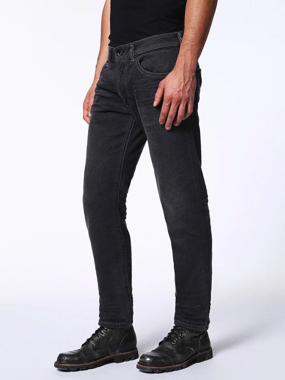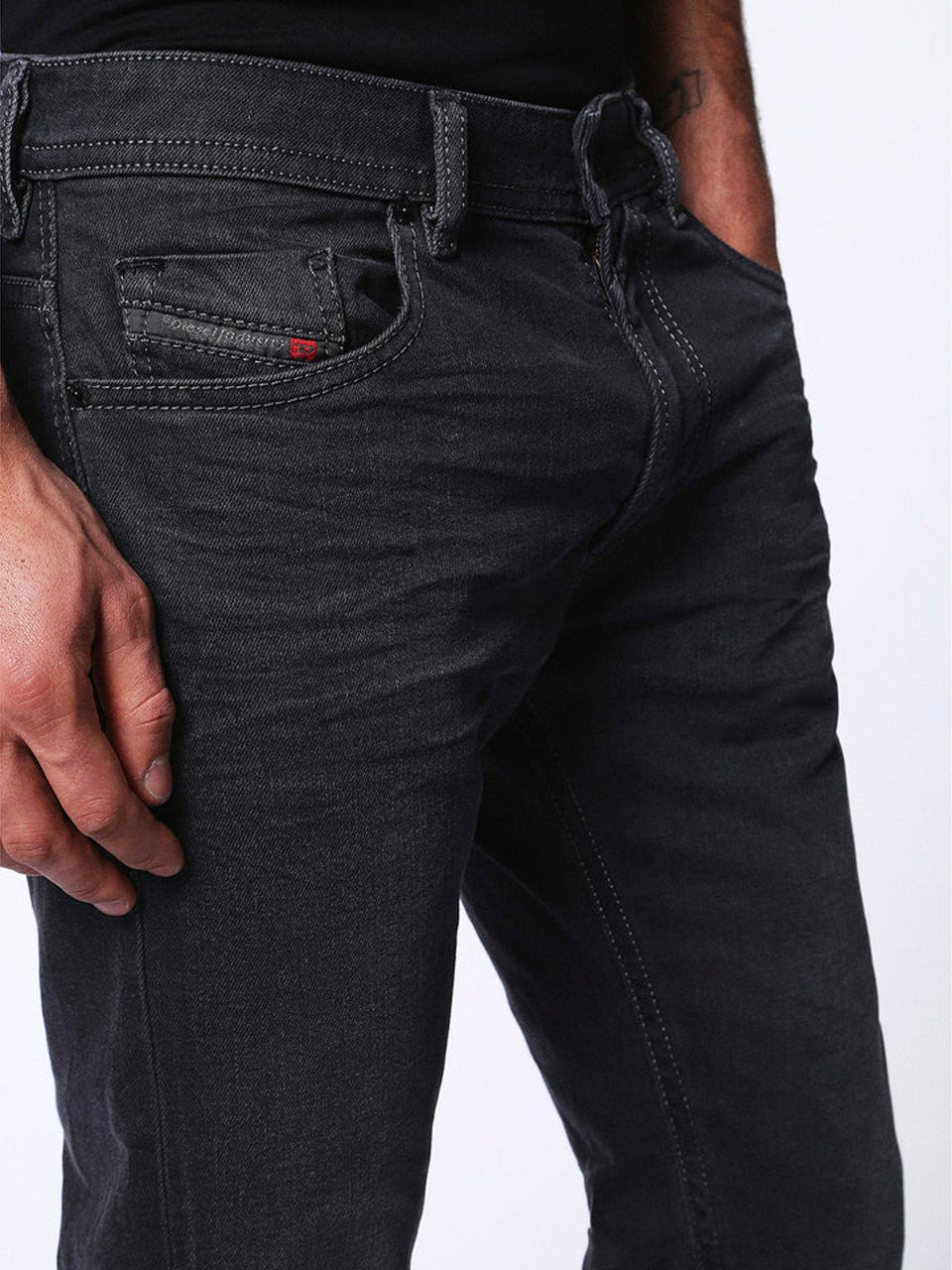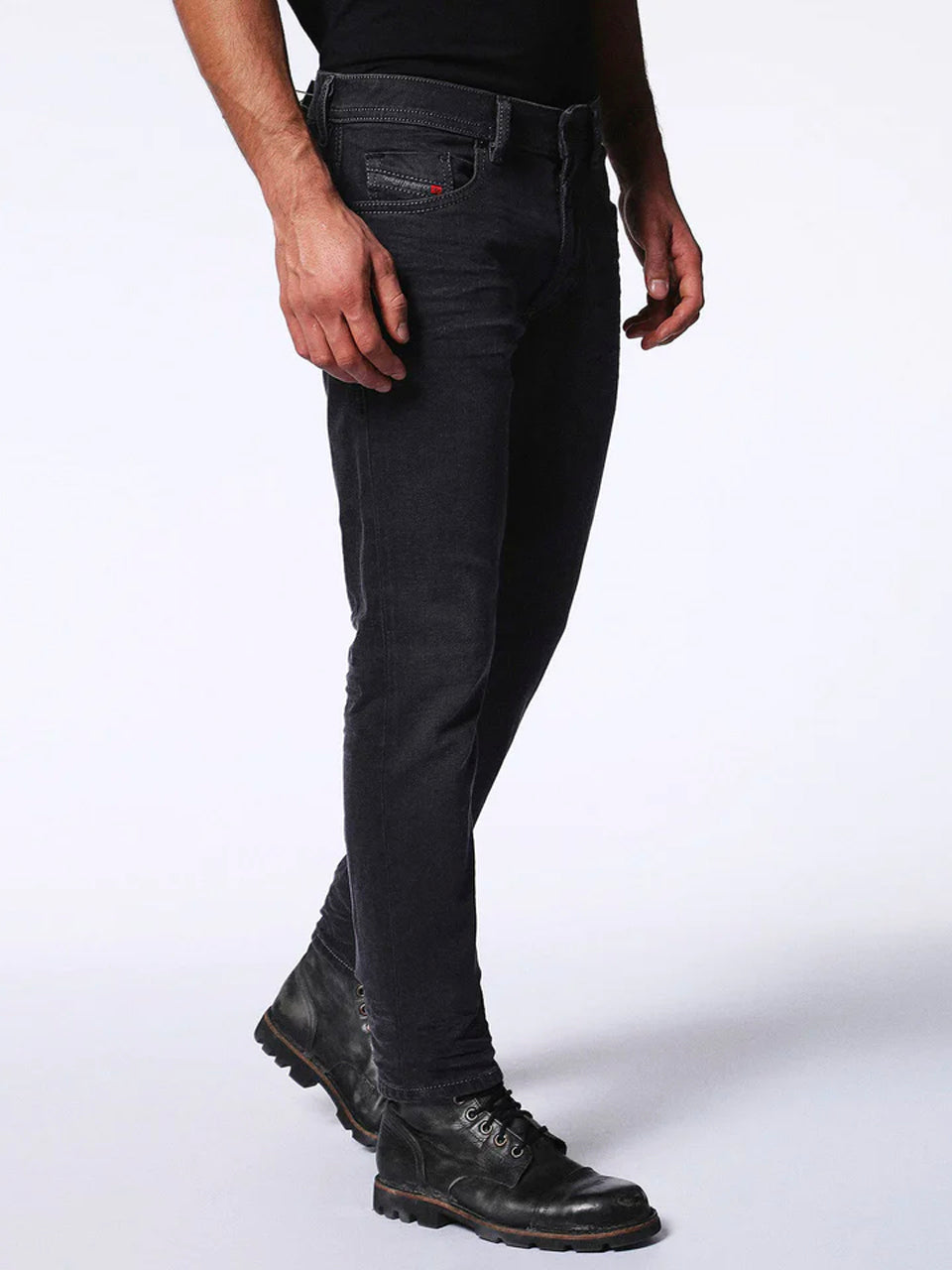 Diesel's new slim fit for upgraded comfort with a low waist, room in the thigh and a unique back designed to flatter all body shapes. Thommer is easily recognizable by the diagonal seam on the front fly, inner 3D eagles on the back pockets, and narrowed hem that sits perfectly on your shoes.