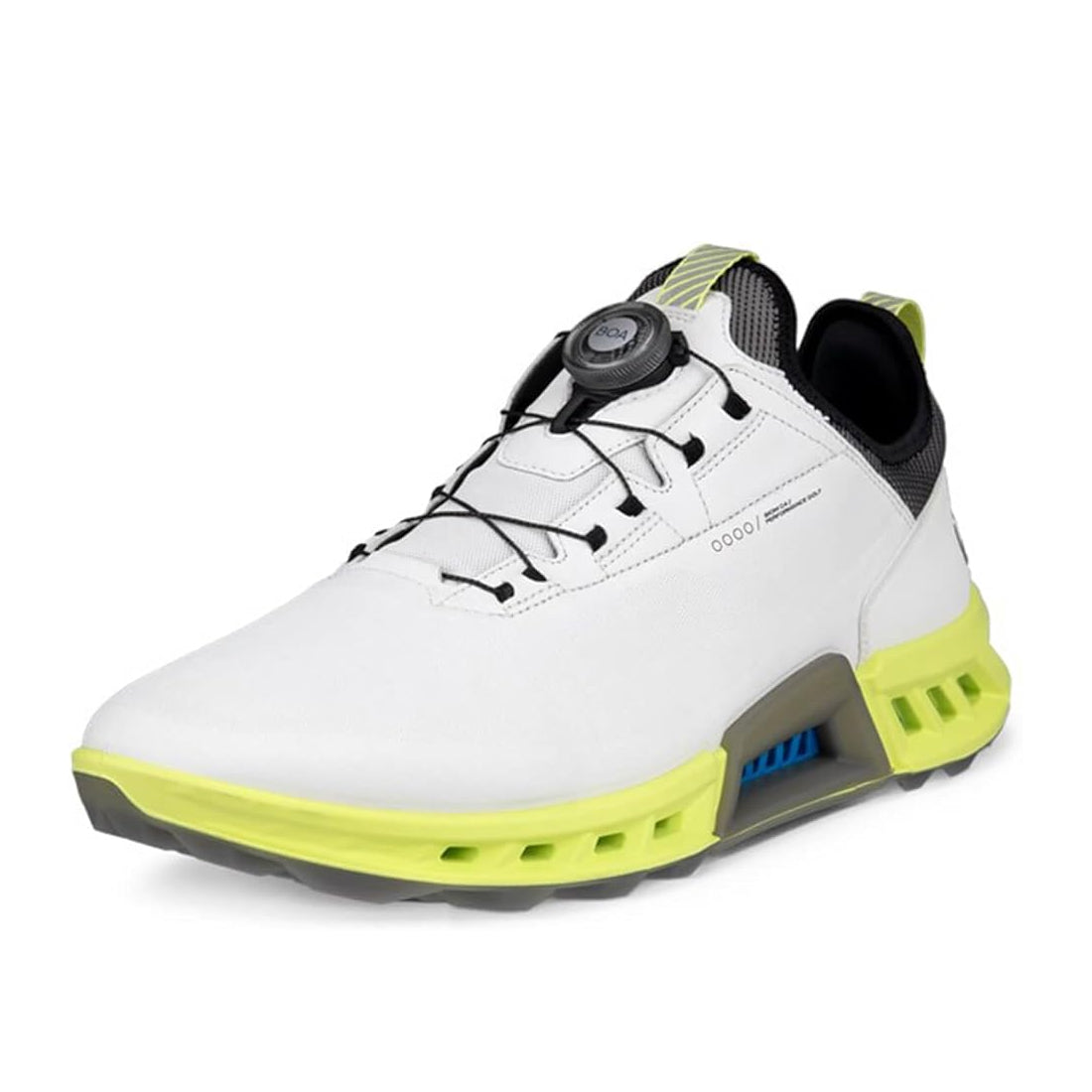 Breathable comfort and innovative performance are mixed with a contemporary, sneaker-style aesthetic in the ECCO MEN'S GOLF BIOM C4 SHOE. For 360-degree breathability and 100% waterproofing, the GORE-TEX SURROUND® construction is combined with the EXHAUST GRID that enables air ventilation towards the sole of your foot. Crafted from ECCO Performance Leather and a super-stretchy mesh sock, the hybrid is set on the progressive ECCO MTN GRIP outsole and powered by BIOM® NATURAL MOTION® Technology. BOA® Fit System delivers micro-adjustable precision fit and is engineered to perform in any conditions.