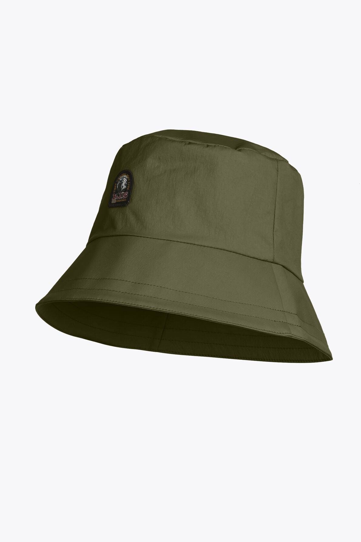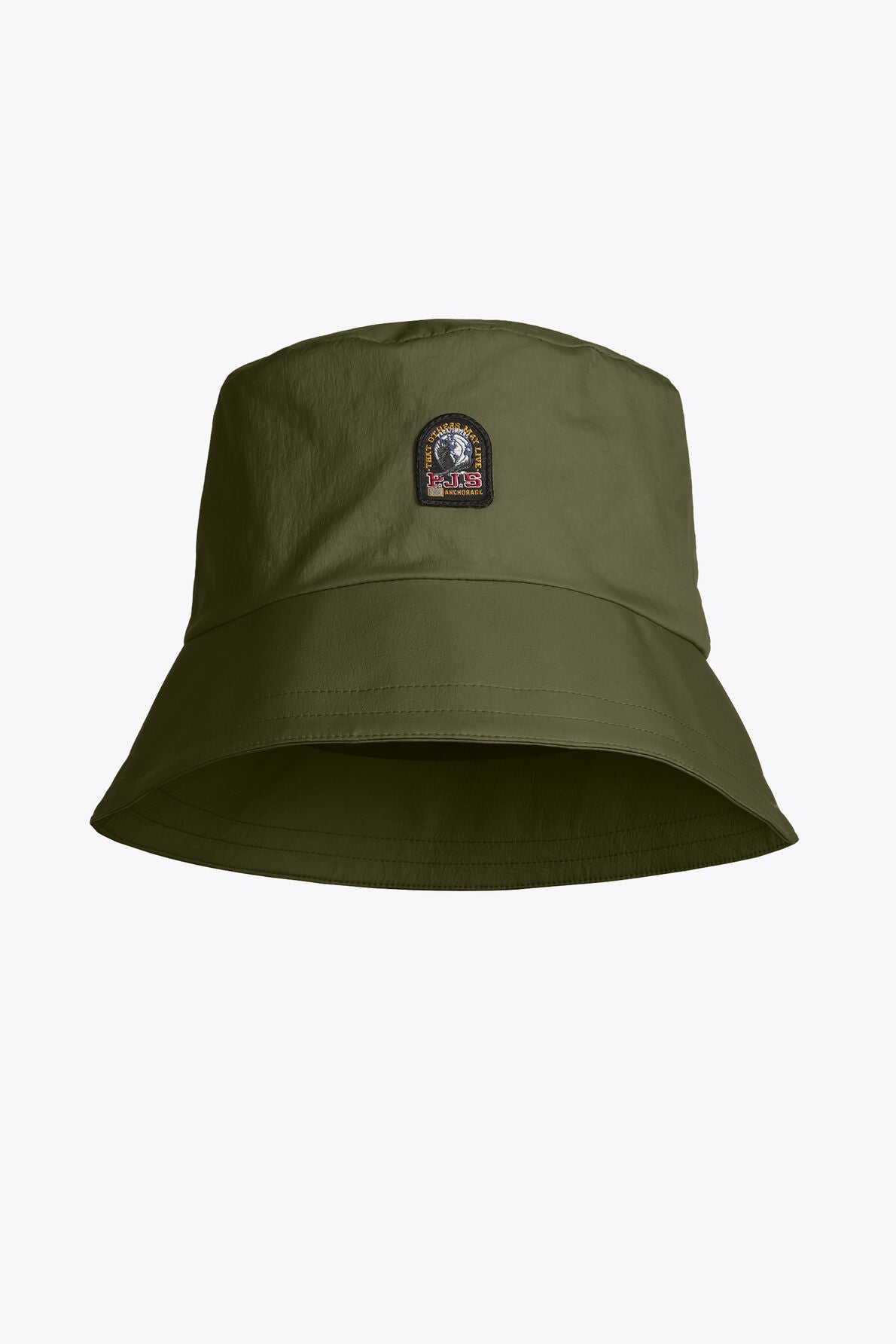Bucket hat with PJS patch on the front. Crafted in a 3-layer fabric: on the face a 100% crinkle nylon poplin, with a polyurethane lamination and a water repellent treatment; on the back 100% polyester jersey.