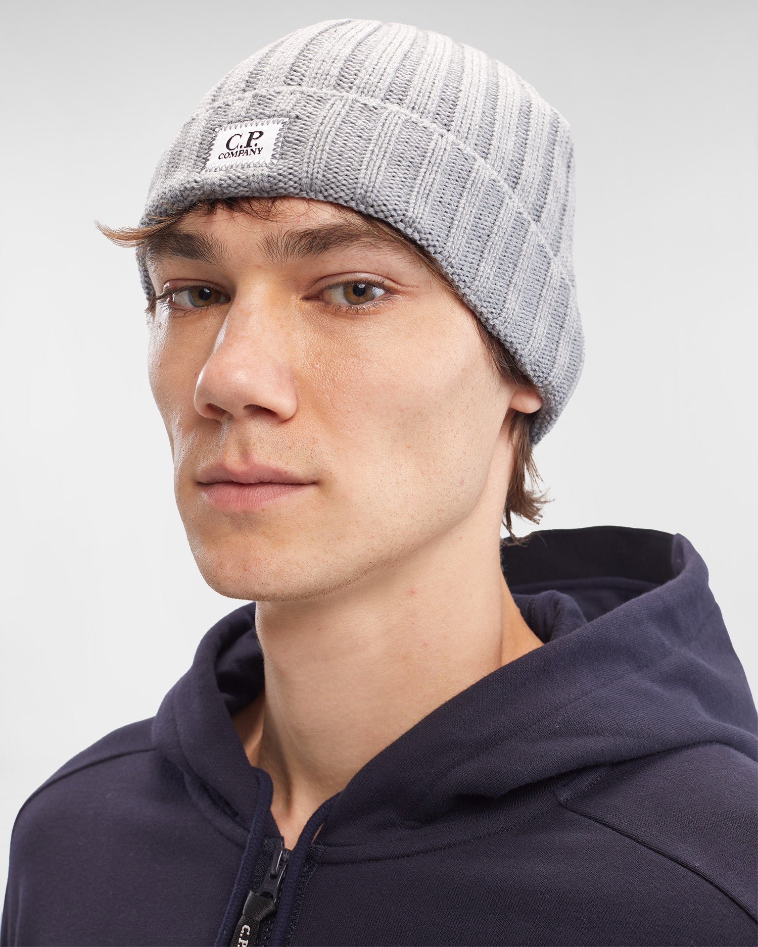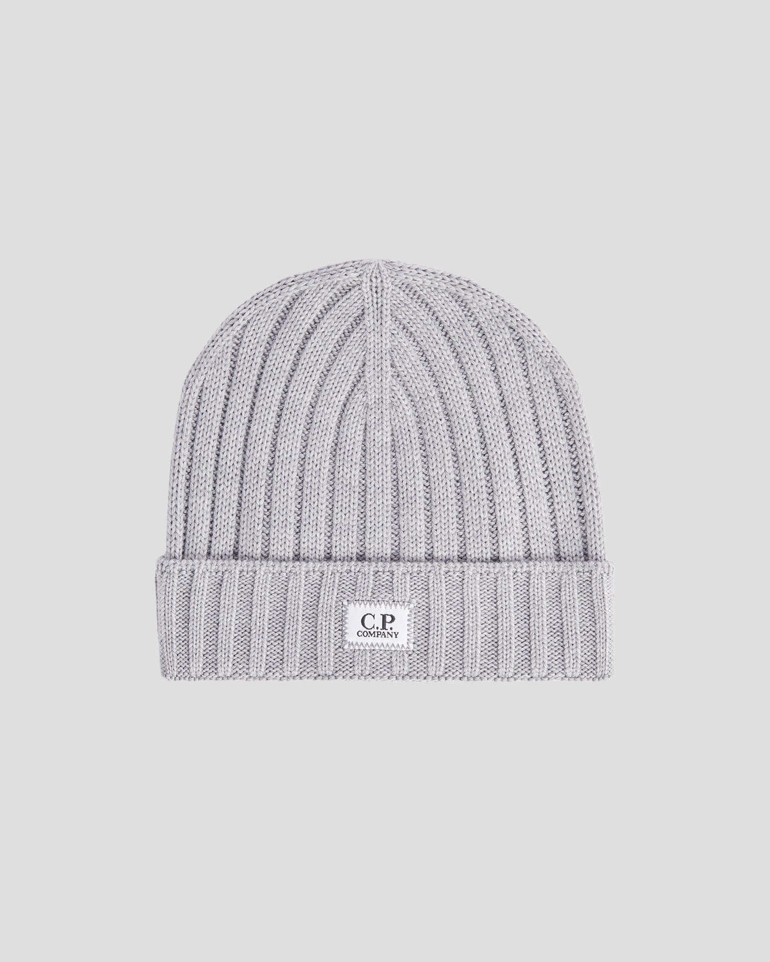 Extra Fine Merino Wool Logo Beanie Grey Melange
