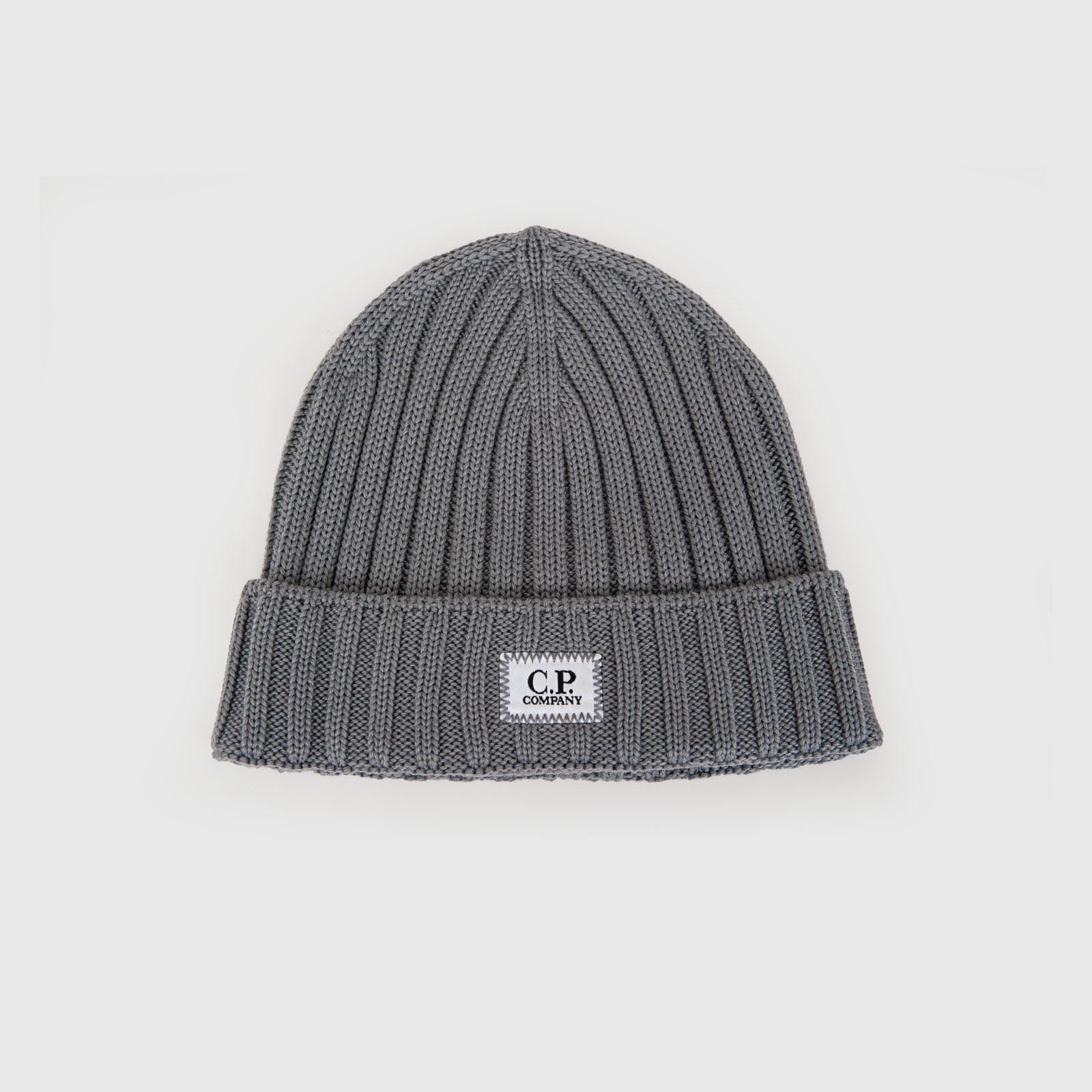 Extra Fine Merino Wool Logo Beanie Griffin Grey