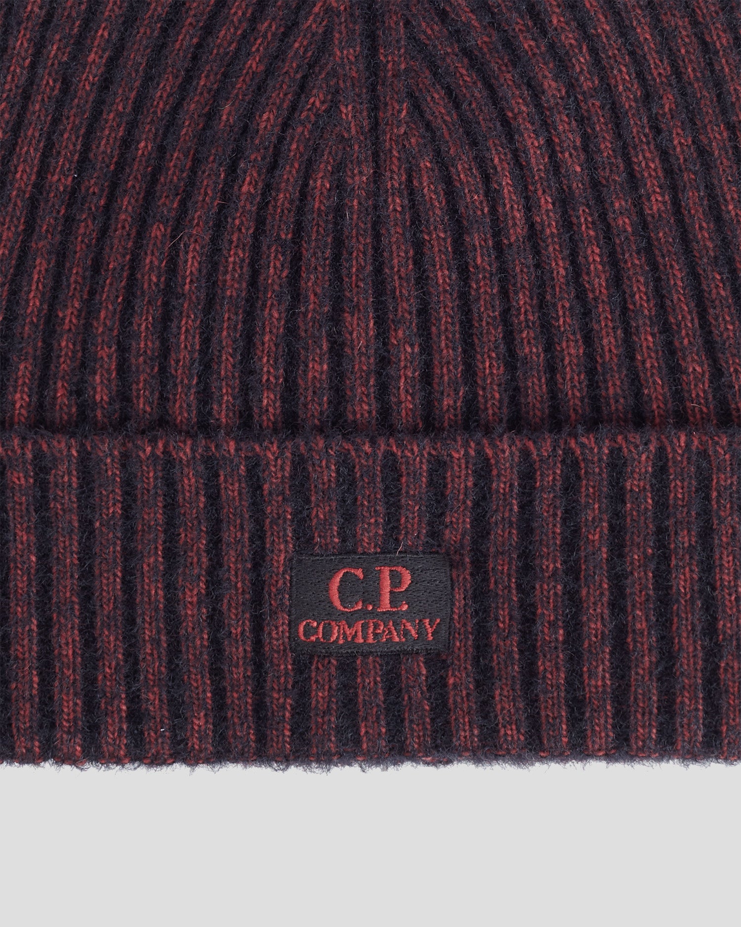 Ribbed knit beanie with the C.P. Company logo detail on the turn-up brim. Knit in premium fleece for a fit that remains insulative and hard-wearing.