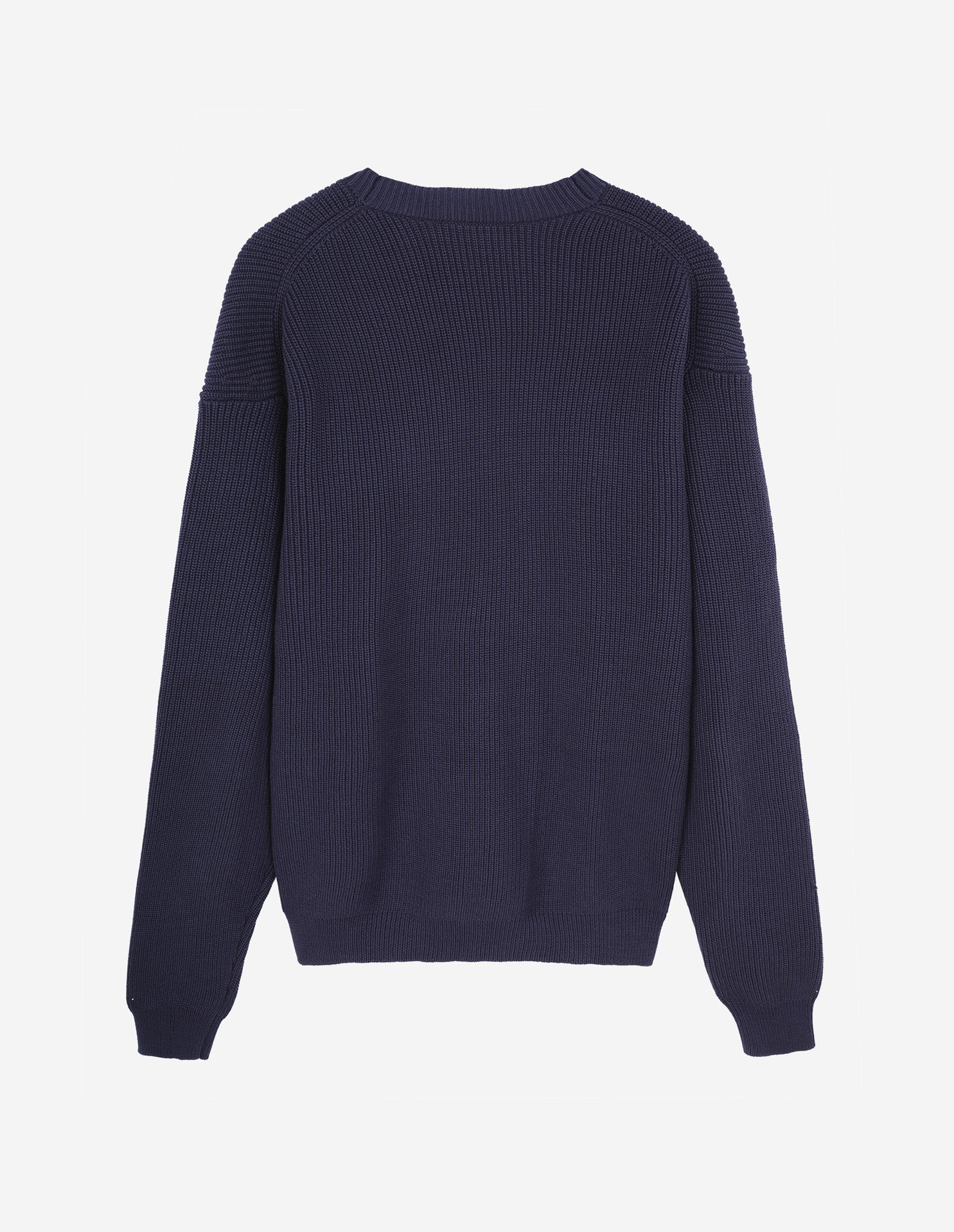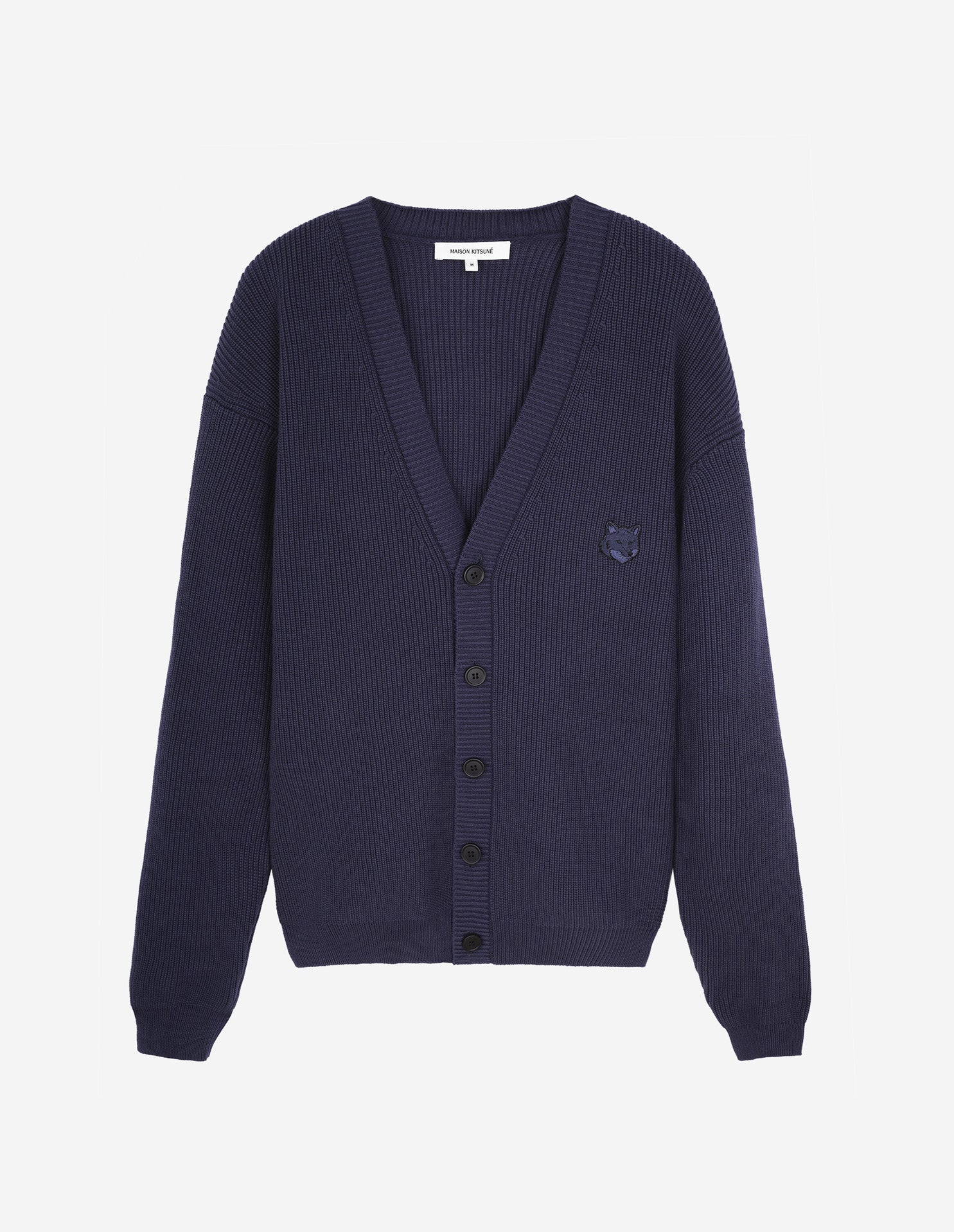 Men's Bold Fox Head Patch Comfort Ribbed Cardigan Ink Blue