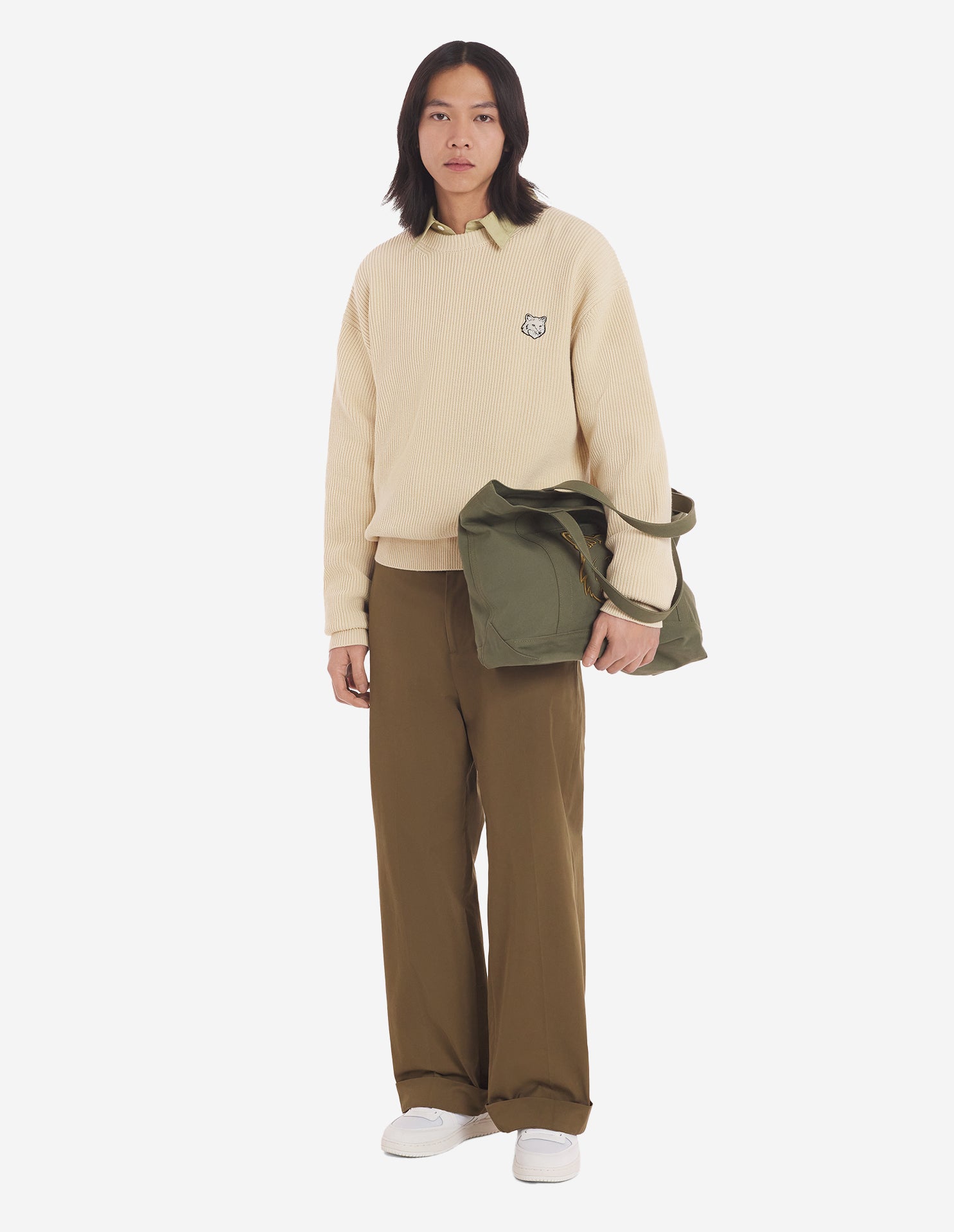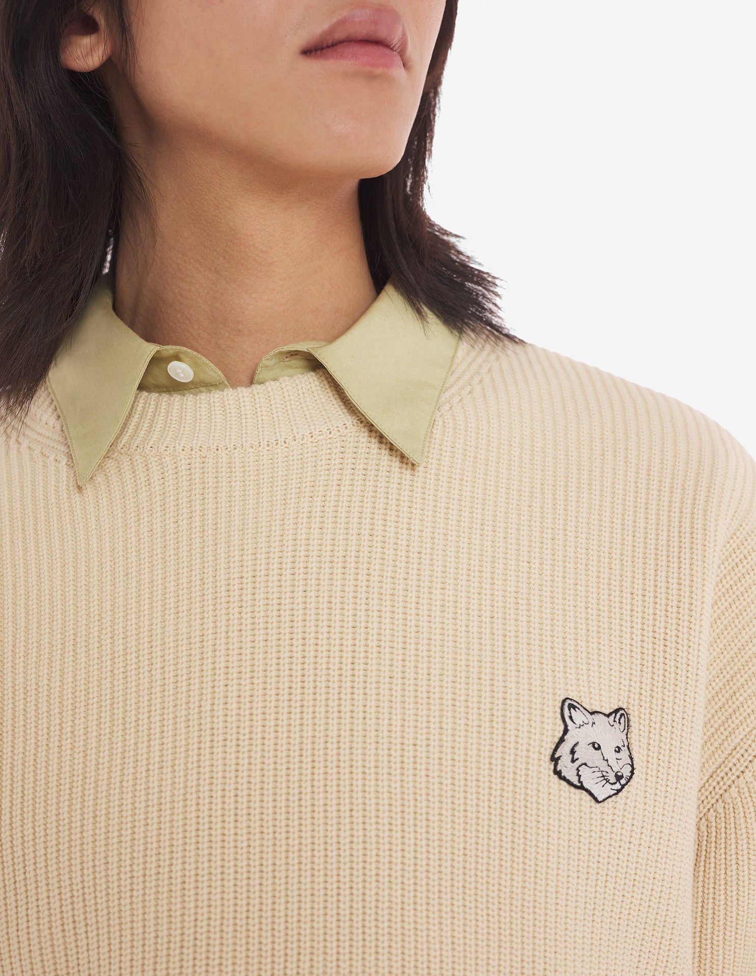 •Ribbed cotton jumper•Comfort cut•Crewneck•Long sleeves•Ribbing at the cuffs, neckline, and waist•Embroidered Bold Fox Head patch at the chest•Plain back