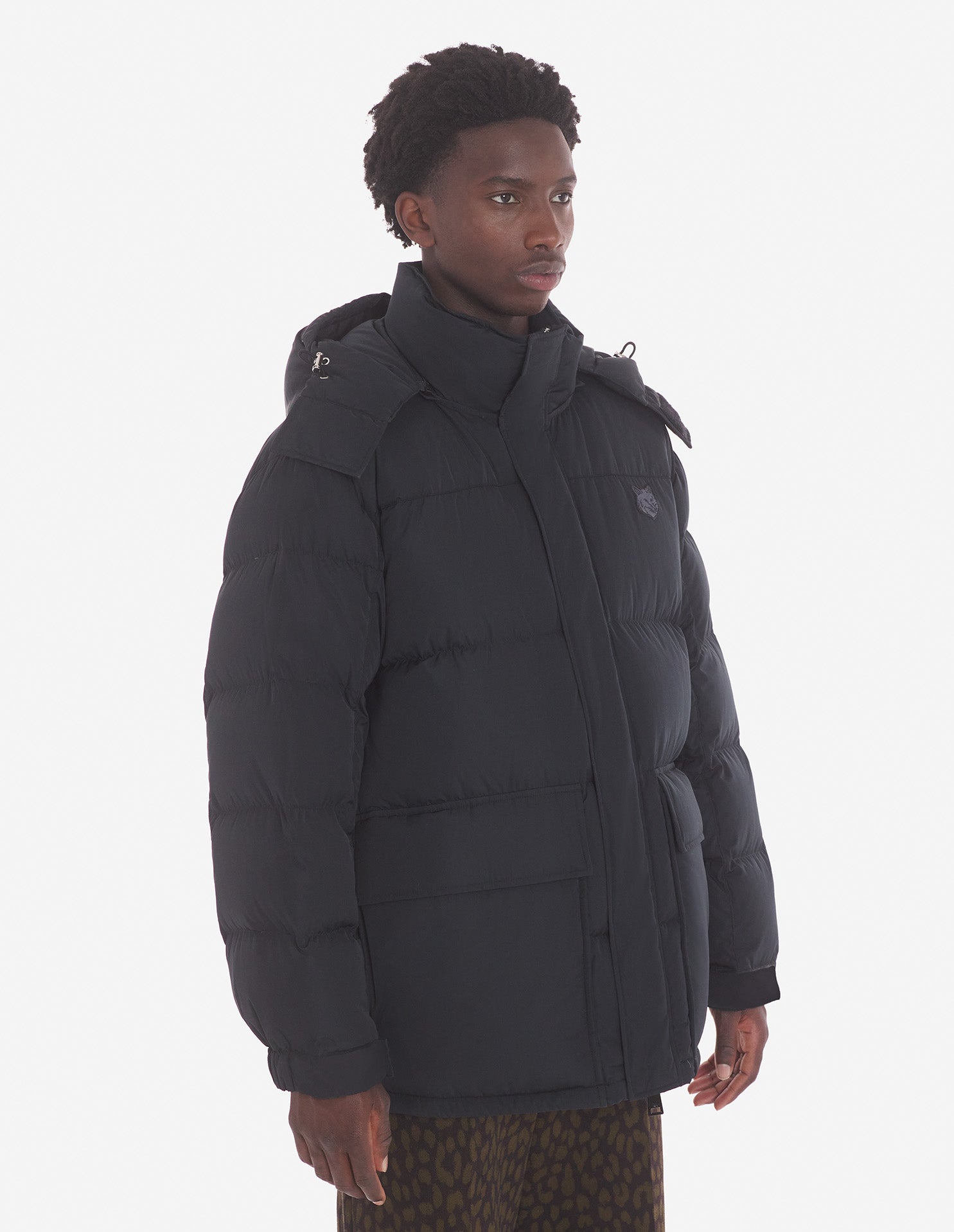 Hooded Puffer In Nylon With Tonal Fox Head Patch Black