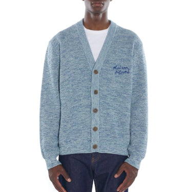 Men's Maison Kitsune Handwriting Comfort Cardigan Ink Blue Melange