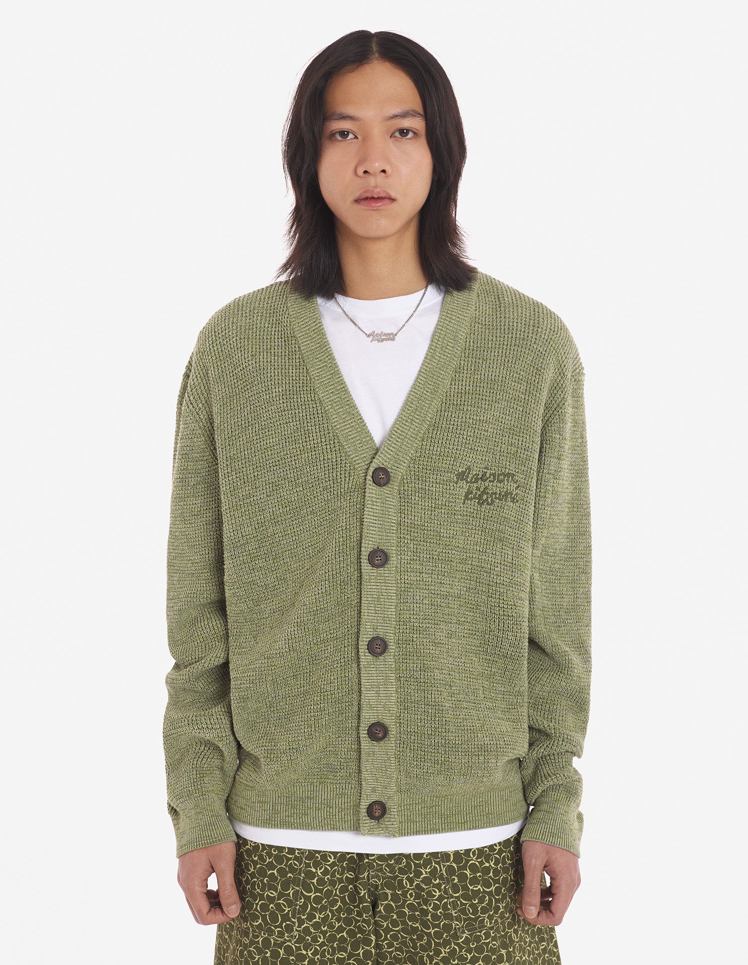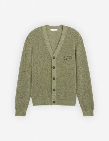Men's Maison Kitsune Handwriting Comfort Cardigan Khaki Green Melange
