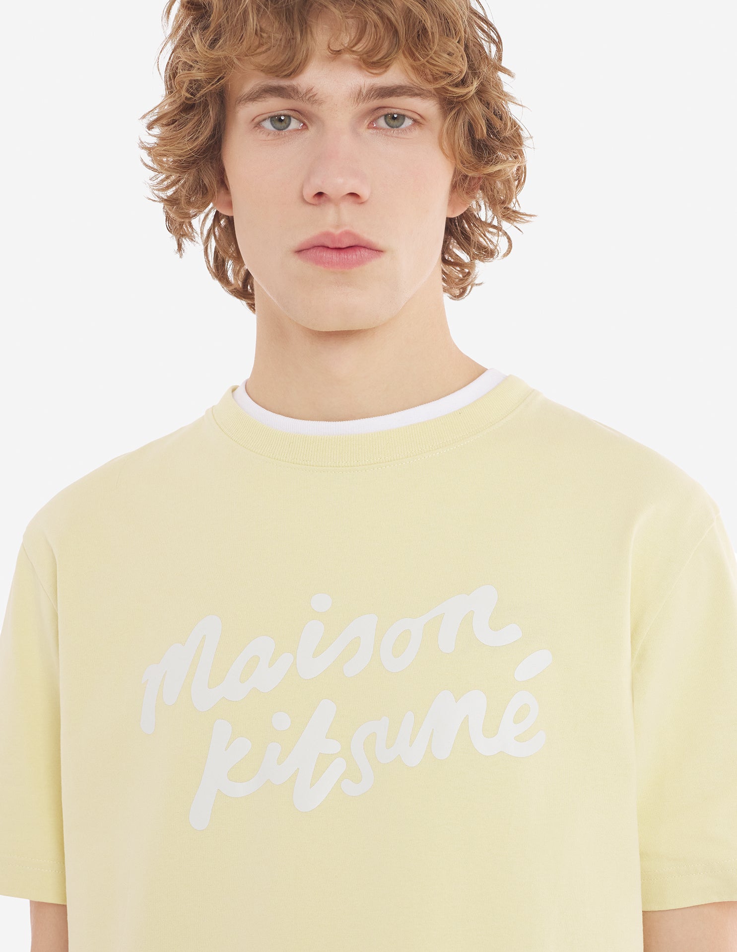Maison Kitsune Handwriting Comfort Tee Shirt Chalk Yellow