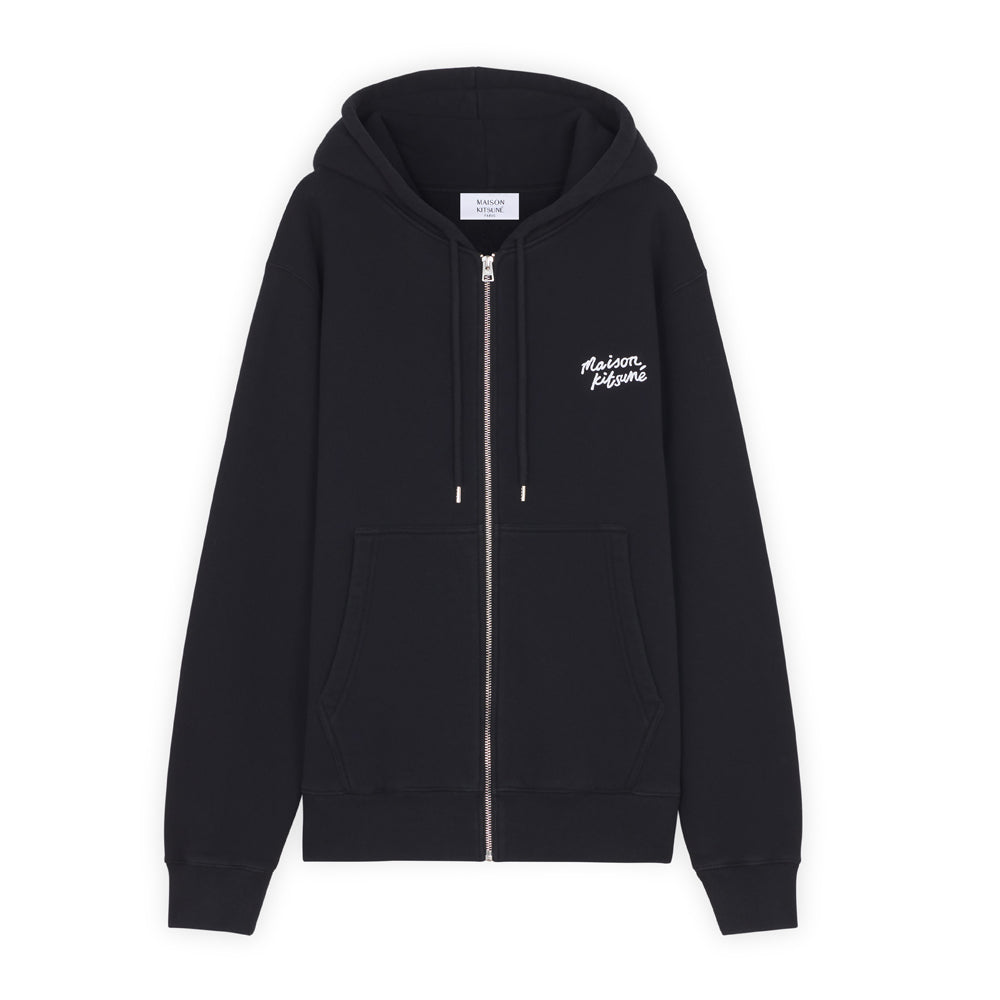 Comfort zipped hoodie in light brushed fleece. Maison kitsune logo handwritten embroidered on the chest.
