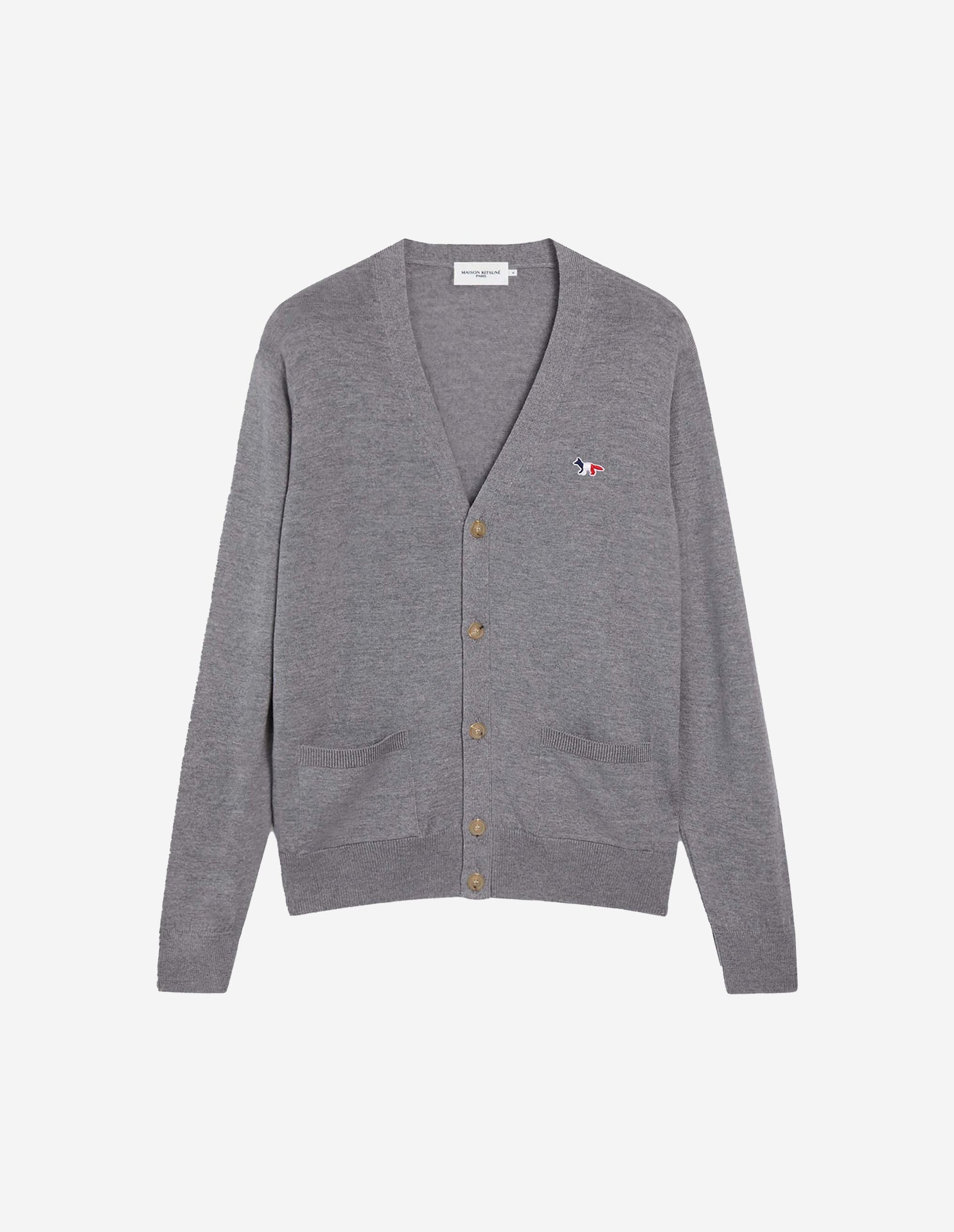 Unisex Tricolor Fox Patch Classic Cardigan Grey Melange
