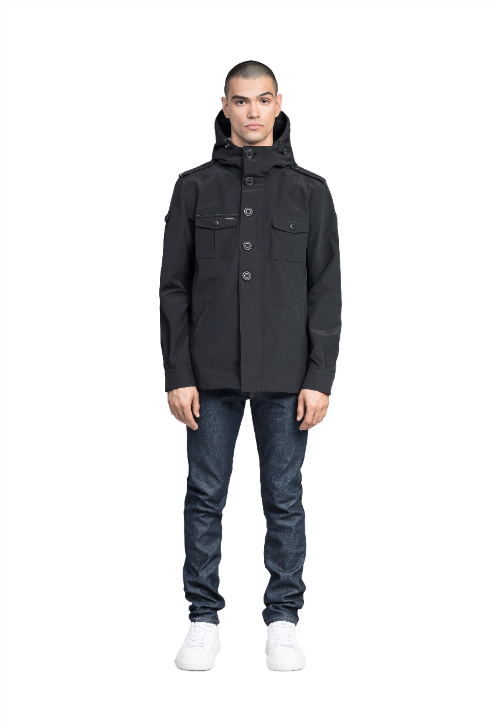 Crafted from advanced matte technical taffeta fabric, the Fisherman Lightweight Tech Jacket offers exceptional durability and a significantly lighter feel. Designed with a waterproof hood, the Fisherman offers versatile protection against unpredictable weather conditions. The hood can be easily tucked away when not in use, maintaining the jacket's sleek silhouette. The fit ensures a sophisticated appearance while allowing for comfortable layering. Its lightweight construction and advanced fabric technology make it an ideal choice for those who need reliable protection without the weight.