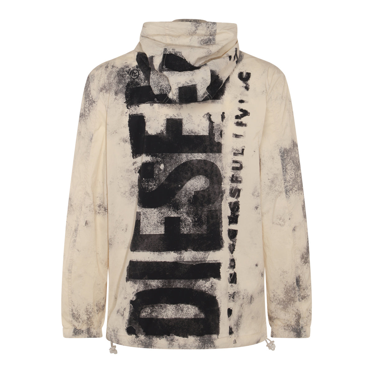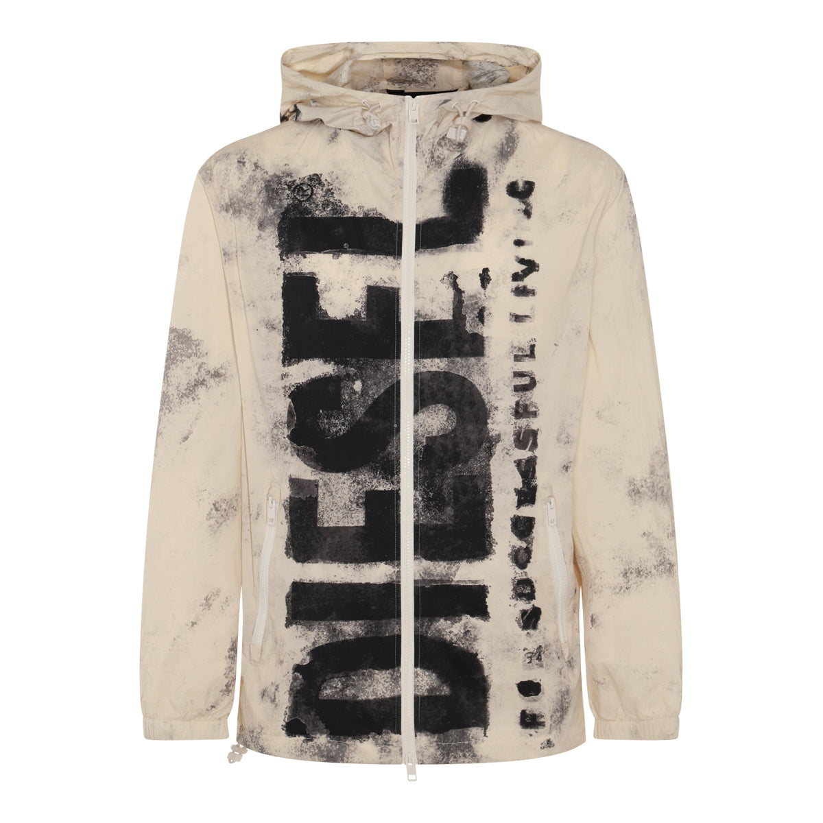 Men's windbreaker in crinkled nylon. Cut for a regular fit with a breathable mesh lining, this lightweight jacket features a splotched watercolour effect and supersized Diesel branding on the back. Toggled drawstrings adjust the hood and hem.