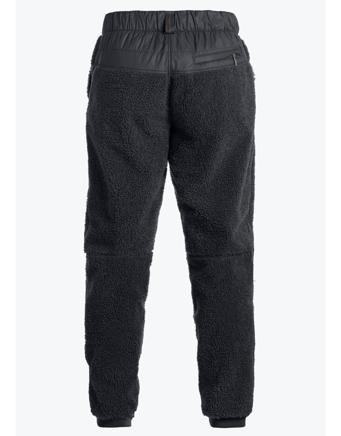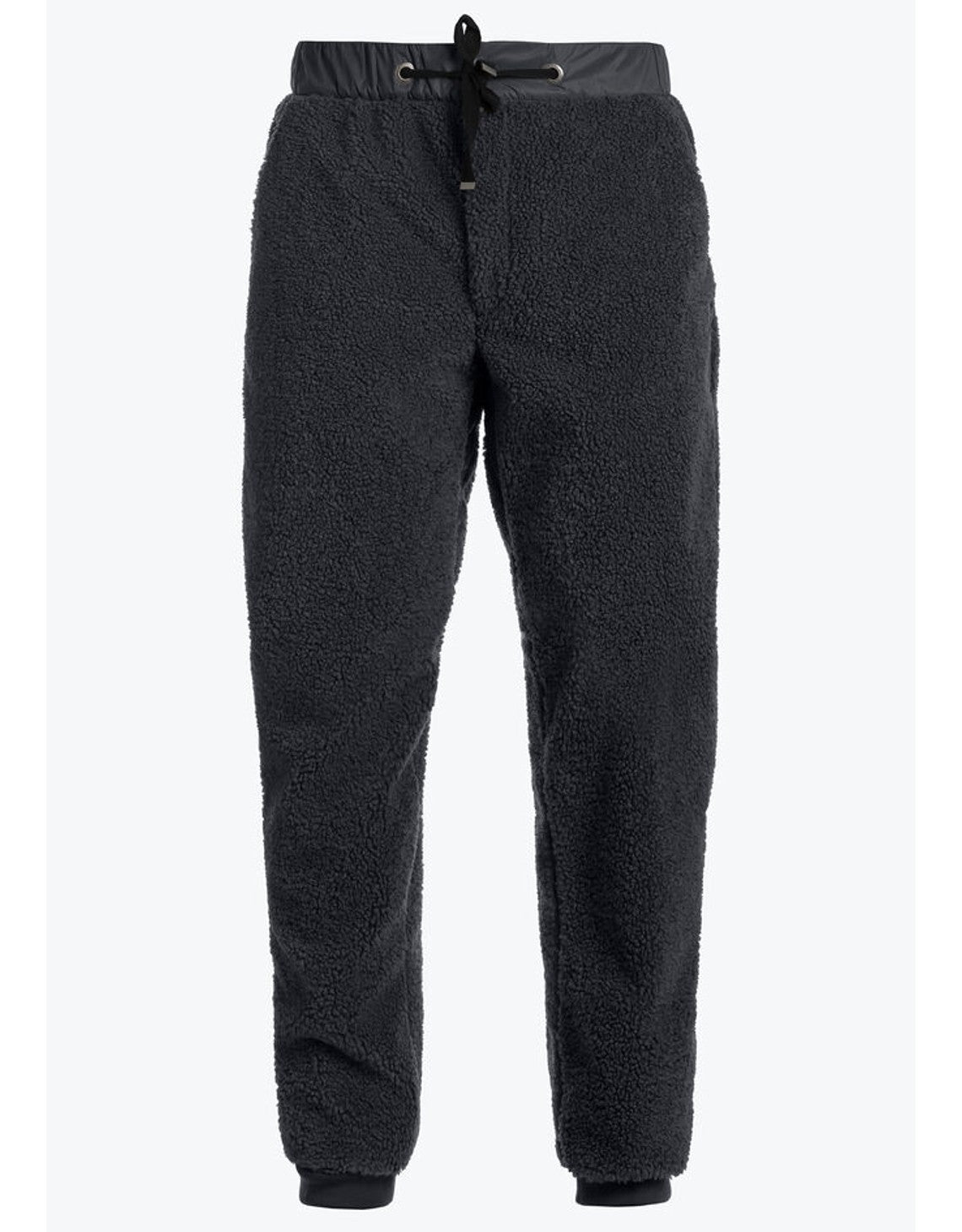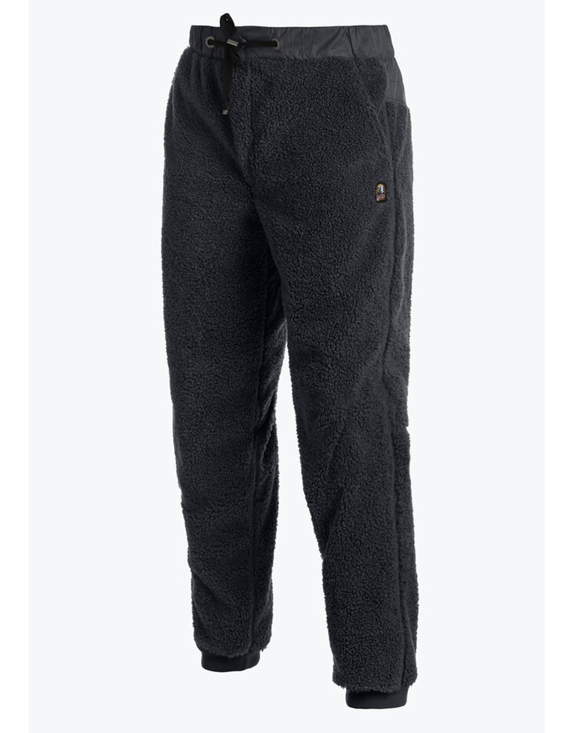 Soft sweatpants crafted in semi-dull Sherpa polyester fleece, with a second shell crafted in recycled 20 den full-dull nylon taffeta with water repellent treatment. Elasticated waist, adjustable by means of tape, front button and zipper. Rear zippered pocket, two front pockets. Ribbed ankle cuffs. Iconic PJS patch on the left side.