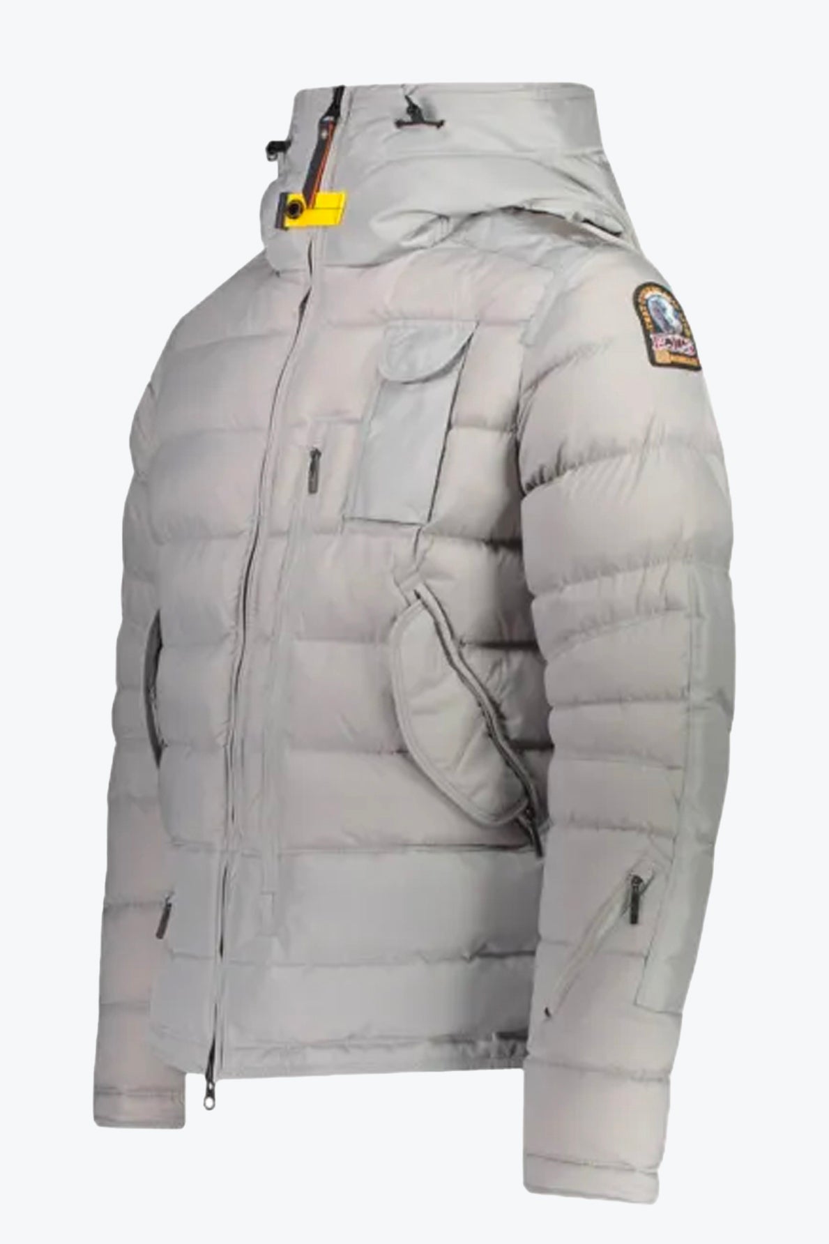 The main fabric is 20 den nylon cordura ripstop, with water repellent treatment; the second shell fabric is 100% recycled nylon oxford with fabric protector treatment and inner polyurethane lamination. Filling is 90% duck down – 10% duck feathers. This jacket has a hood adjustable by means of drawstring and a two-way zipper. It features multiple pockets including two small pockets on the sleeves. On the inside, the jacket has a zippered pocket and a powder skirt. Adjustable bottom by means of a drawstring, ribbed cuffs and thumbhole. Underarm ventilation eyelets. It features iconic details such as the yellow elastic strap and the patch.