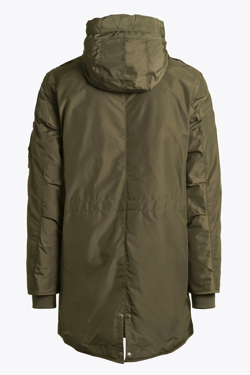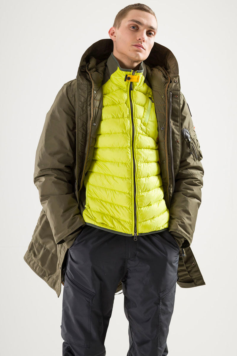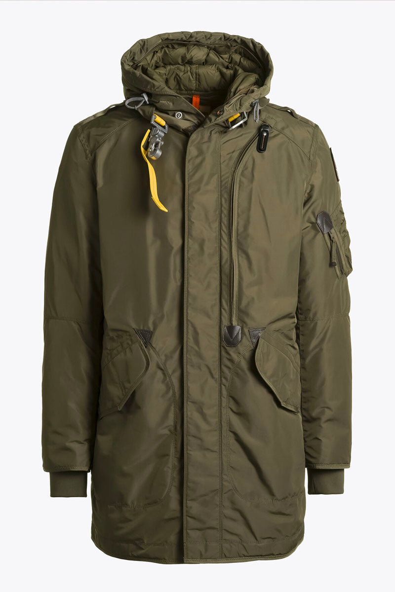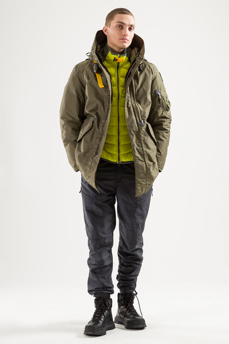 The Tank parka is an all-time favourite with a sleek design for an urban lifestyle. With the iconic Parajumpers details, like the cargo pocket and the yellow elastic strap with hook inspired by the one used by parachutists.