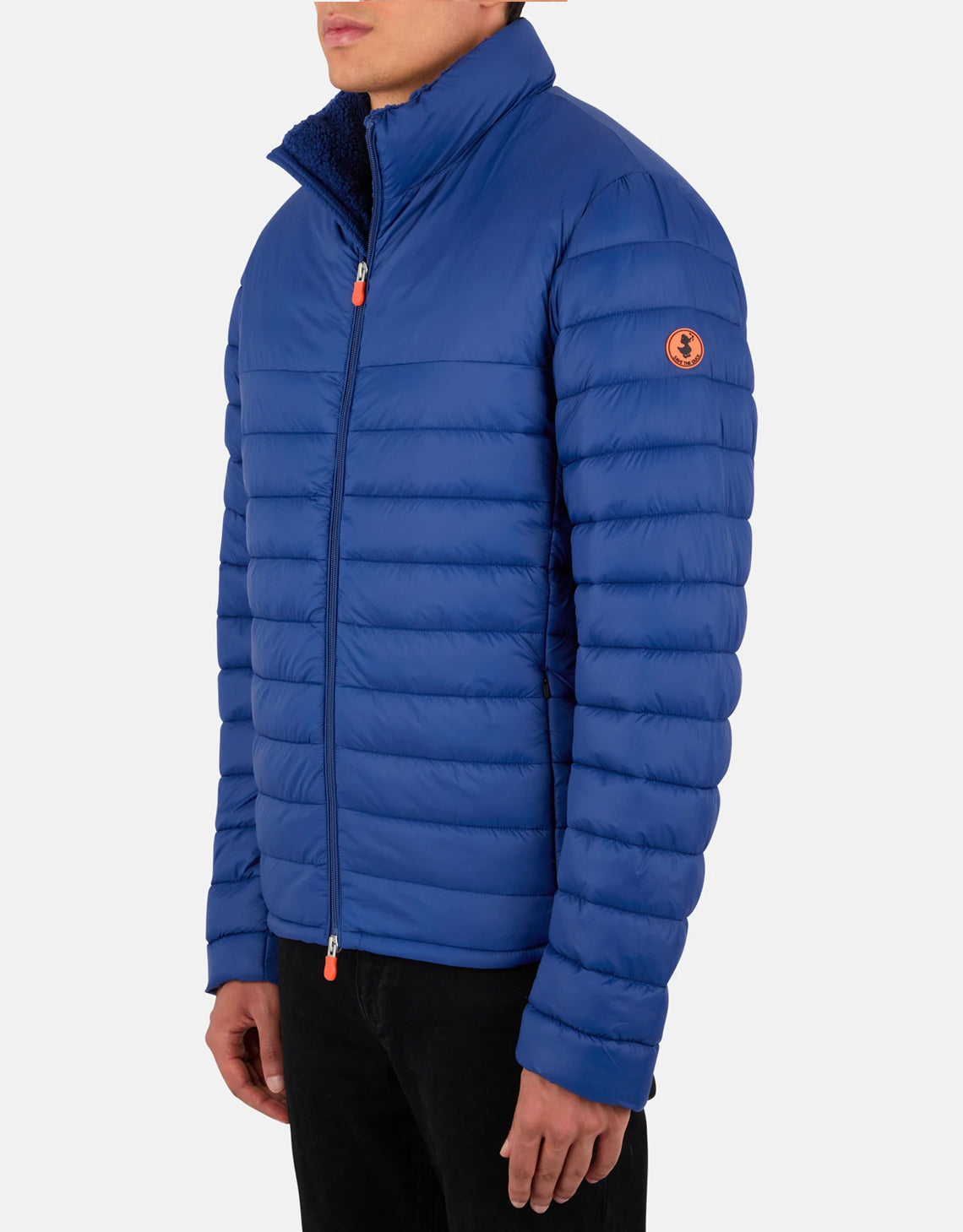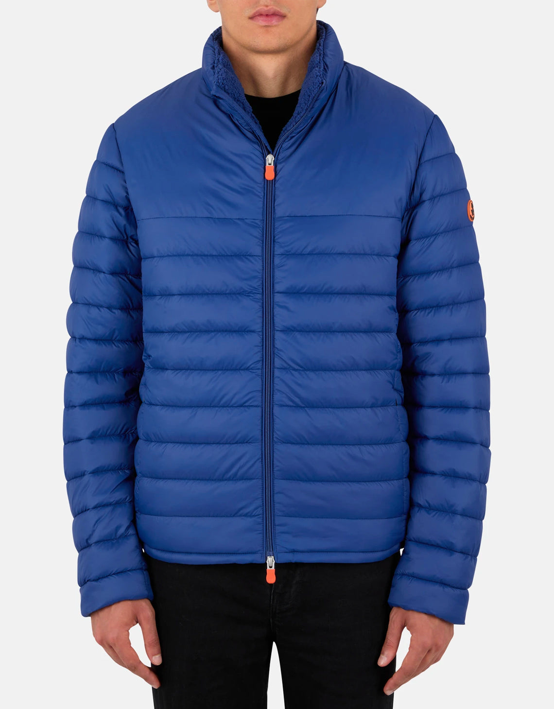 A padded, quilted jacket made with soft high density 100% nylon fabric with a standing collar and faux fur lining. The jacket is lightweight yet resistant, providing protection from water and air, absorbing moisture and drying quickly. Equipped with a central double slider zip and two side pockets enclosed with zips, the jacket is finished with a logo on the left sleeve.